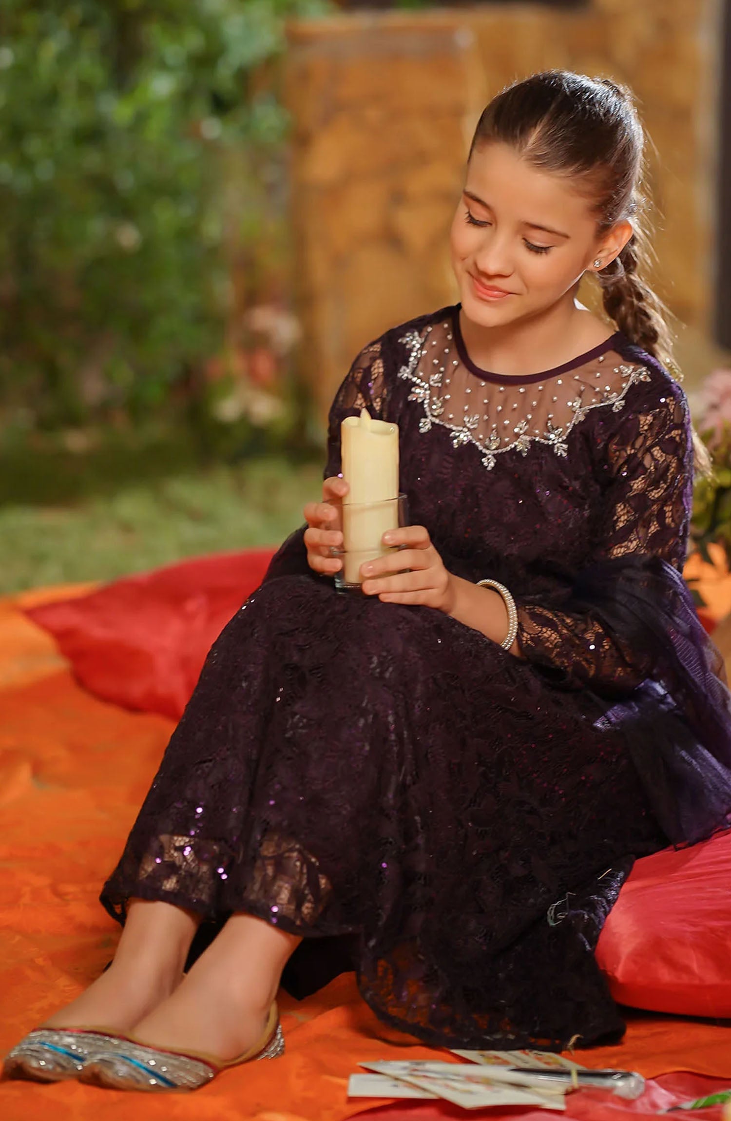Top: Purple Sequence Embroidered Net with Hand Adda Work and Malai Crepe Lining Stitched