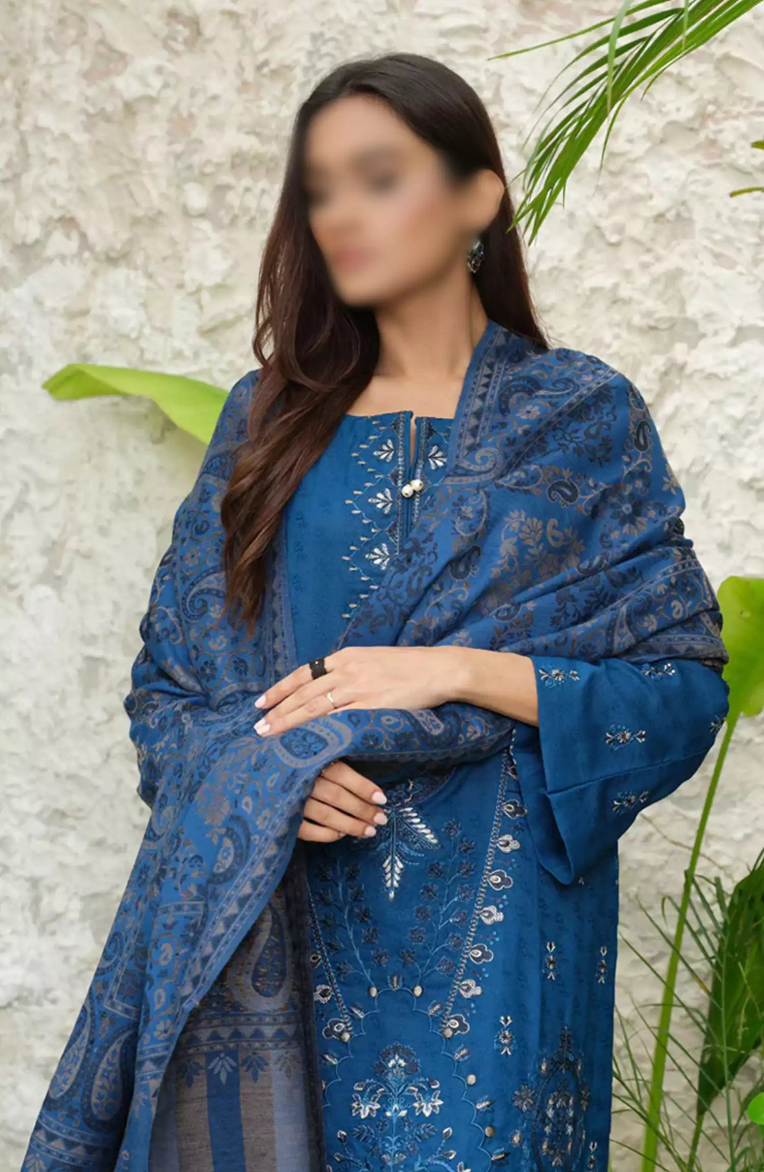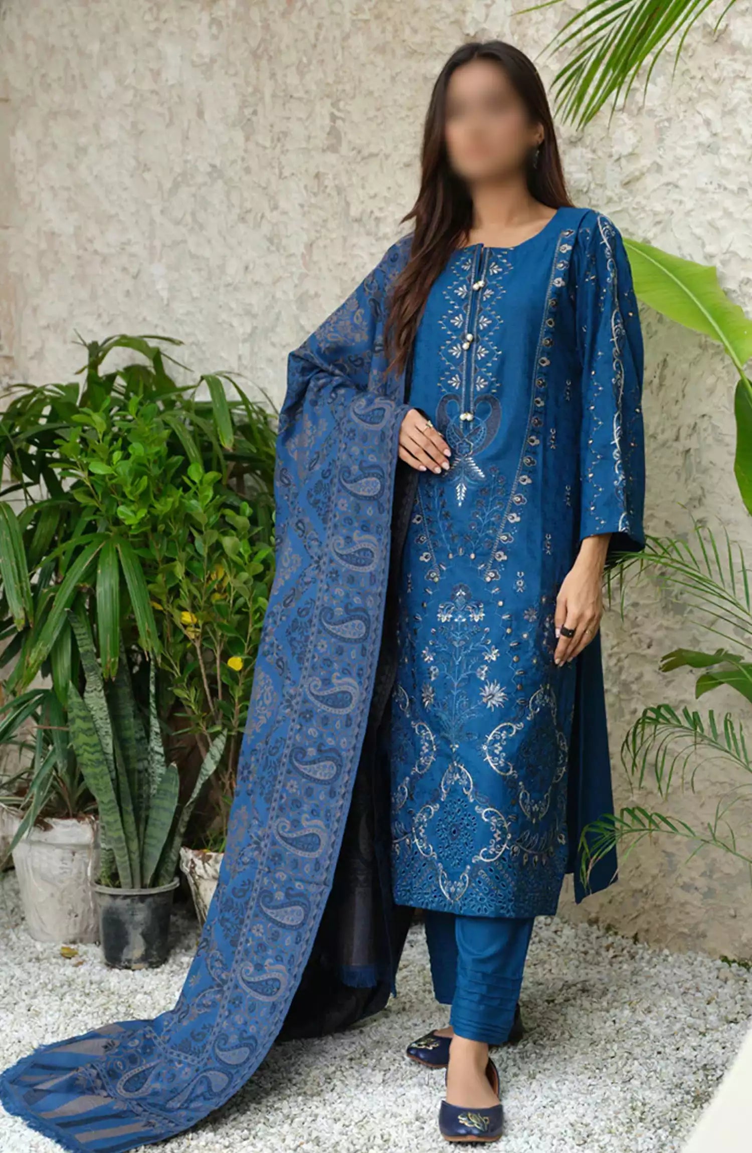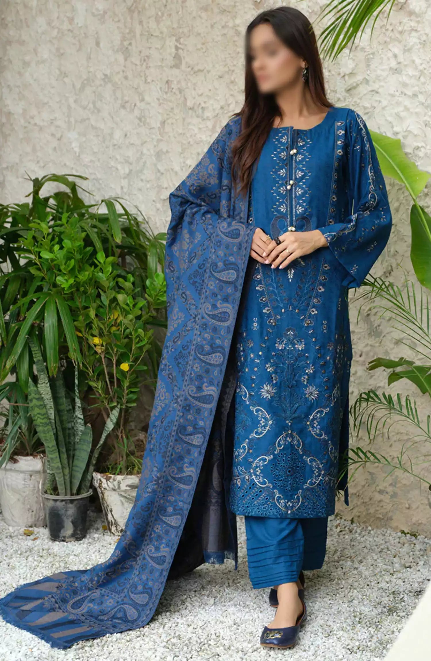 Sequins Embroidered Dyed Self Wool Collection by Marjjan - MDS-71 (TEAL BLUE)