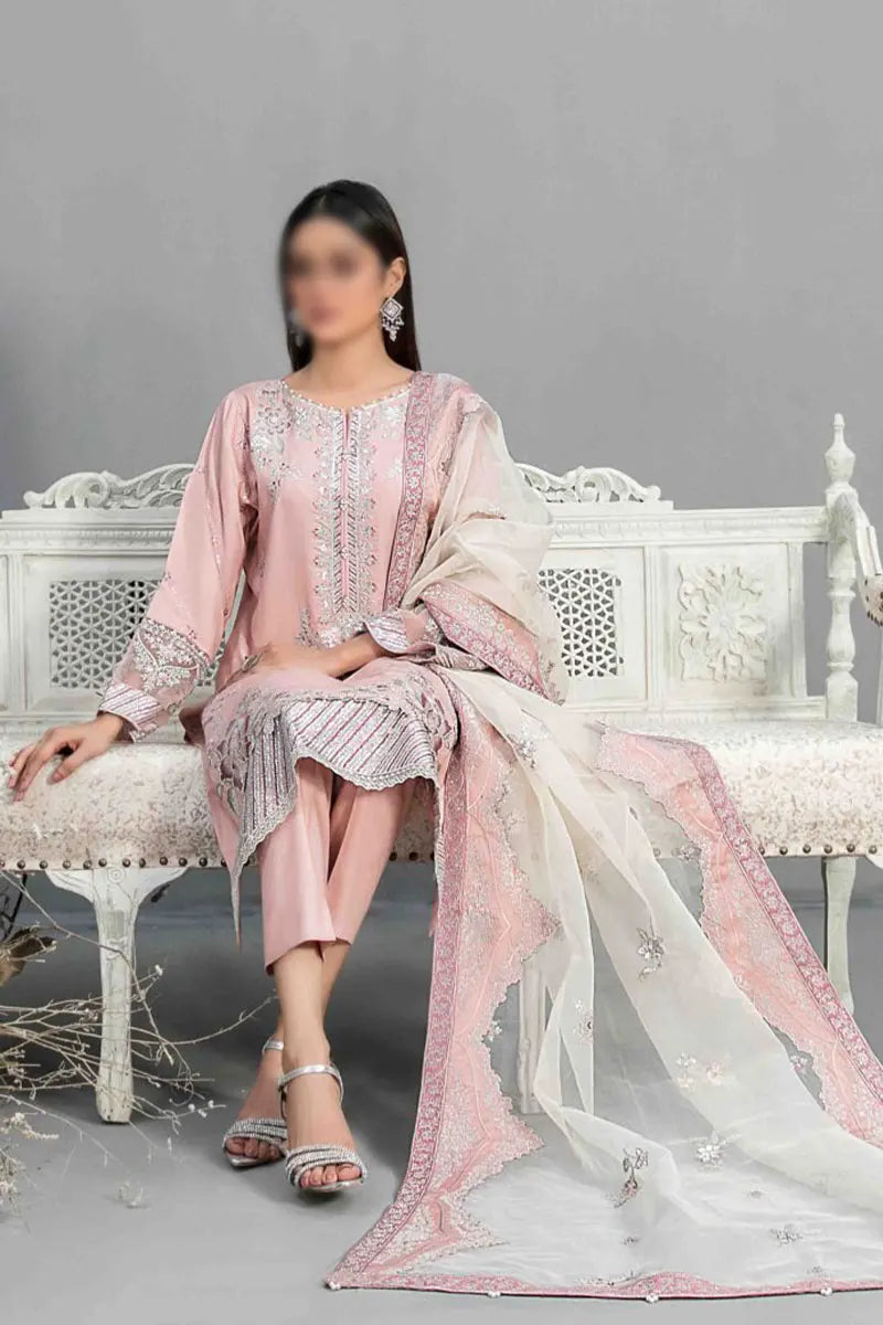 3 Piece | All Categories Women | Embroidered Satan | Semi Stitched | SERAI Fancy Heavy Embroidered Sateen Collection 2023 | Shop by Color Pink | Shop by Season All Seasons | Tawakkal Fabrics | Women | Womens Discount