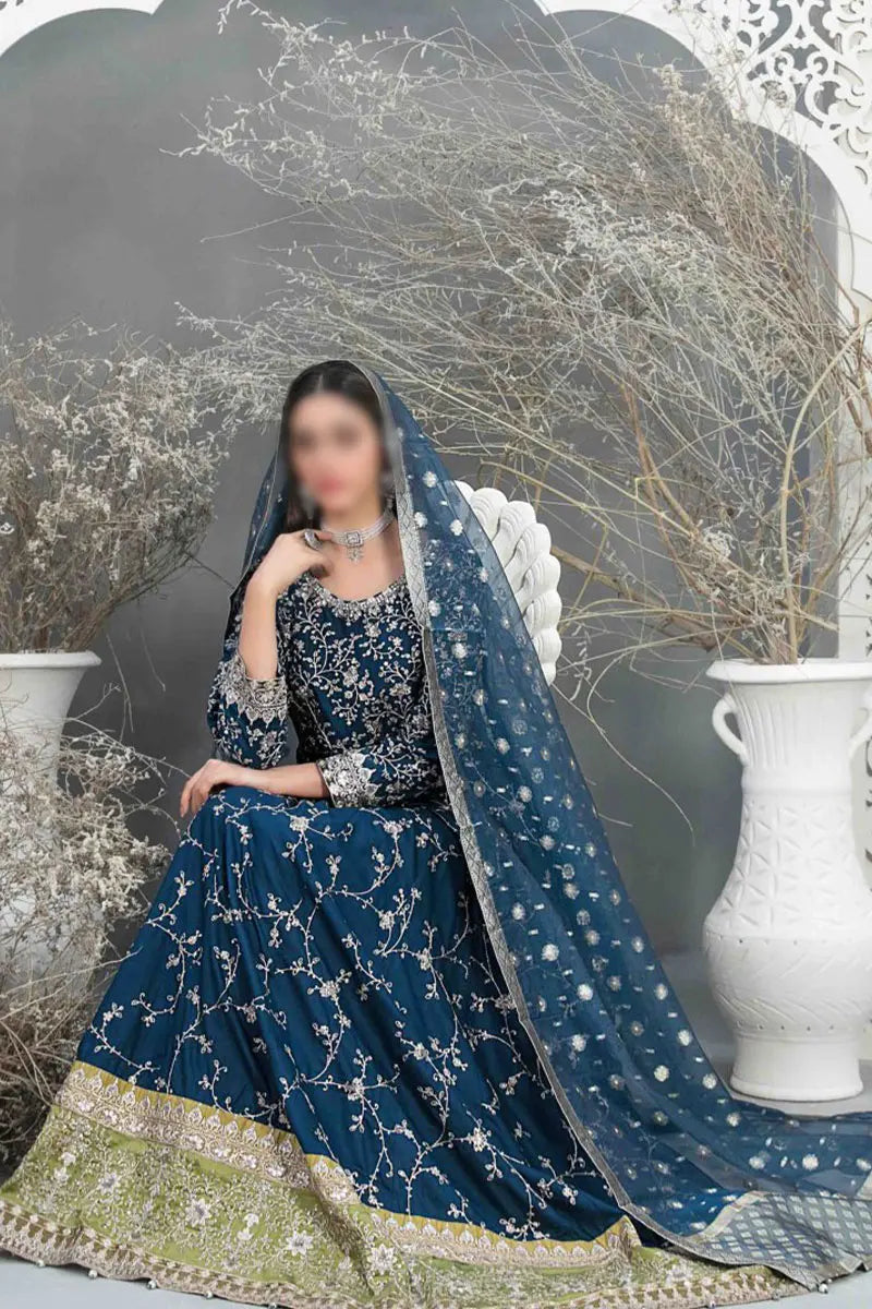 Modest Embroidered Chiffon Stitched 3 Piece Suit - 9825-Blu - MOD25PRF - Blue - Festive Girls Collection