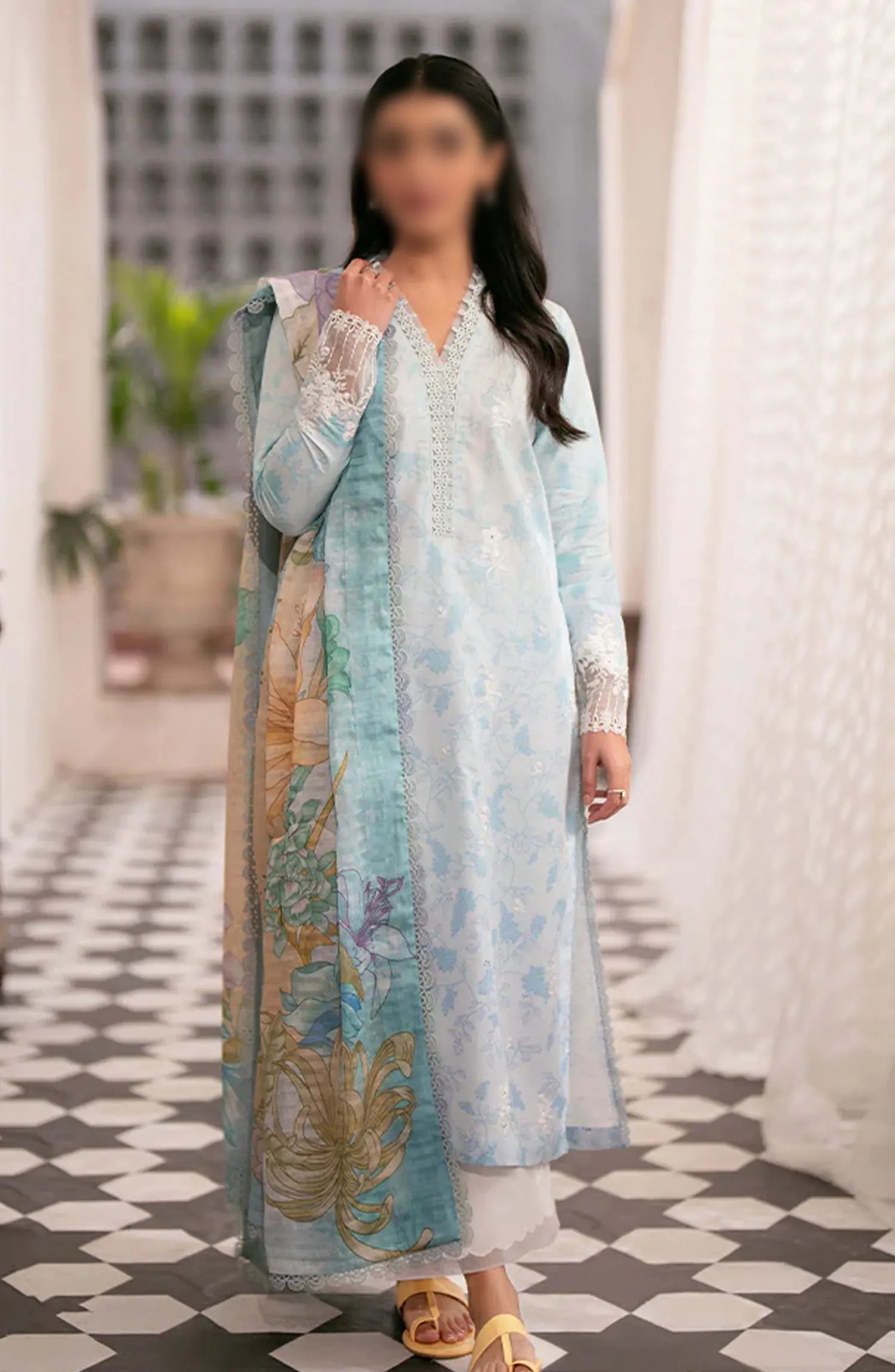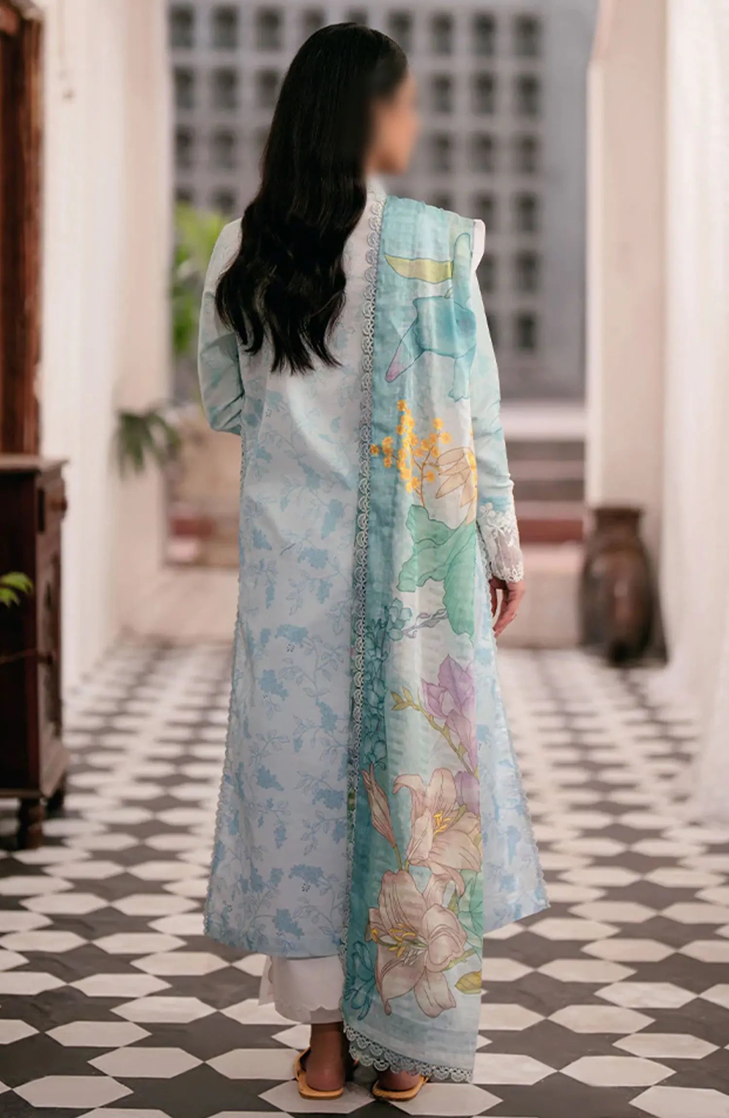 Seran Afsanah Unstitched Luxury Lawn Collection 2024 has been styled in the image for photography and illustrative purposes.