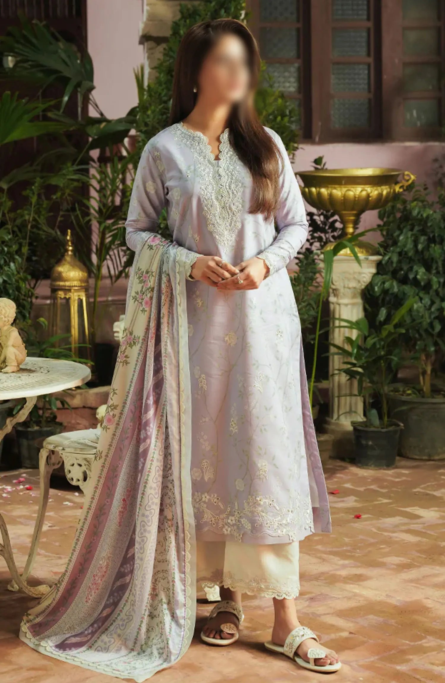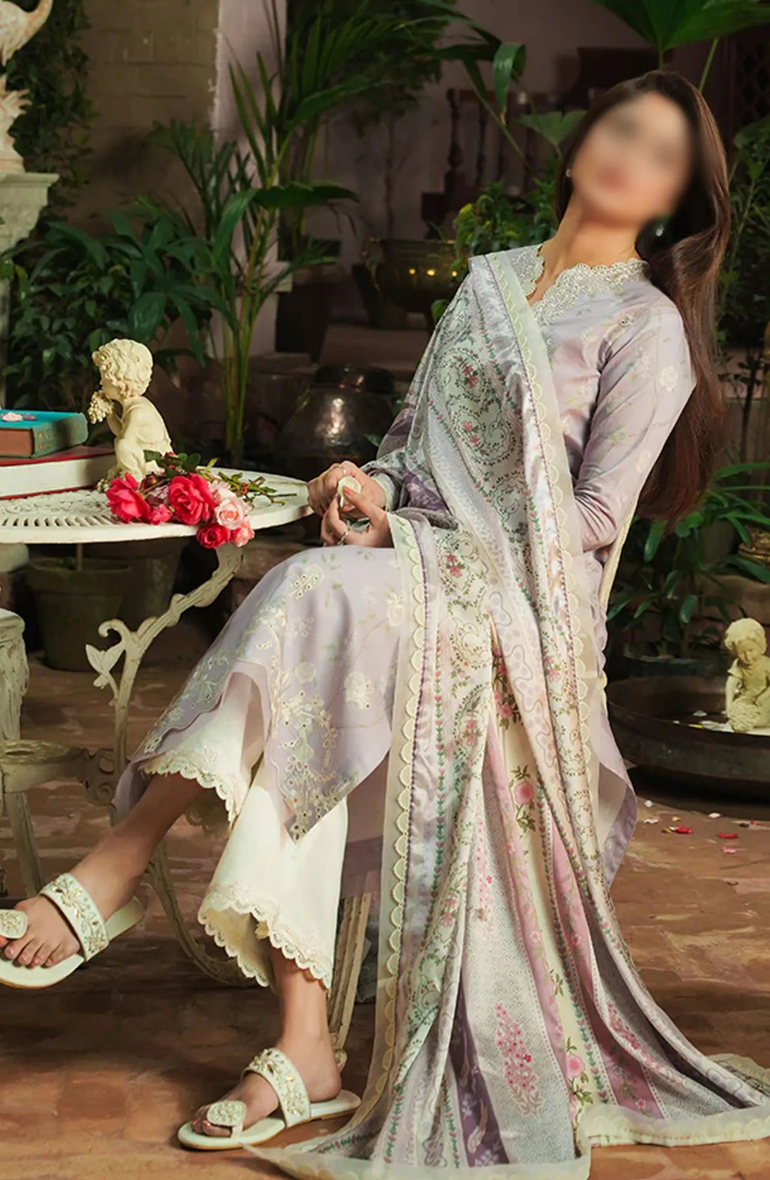 Seran Afsanah Unstitched Luxury Lawn Collection 2024 has been styled in the image for photography and illustrative purposes.