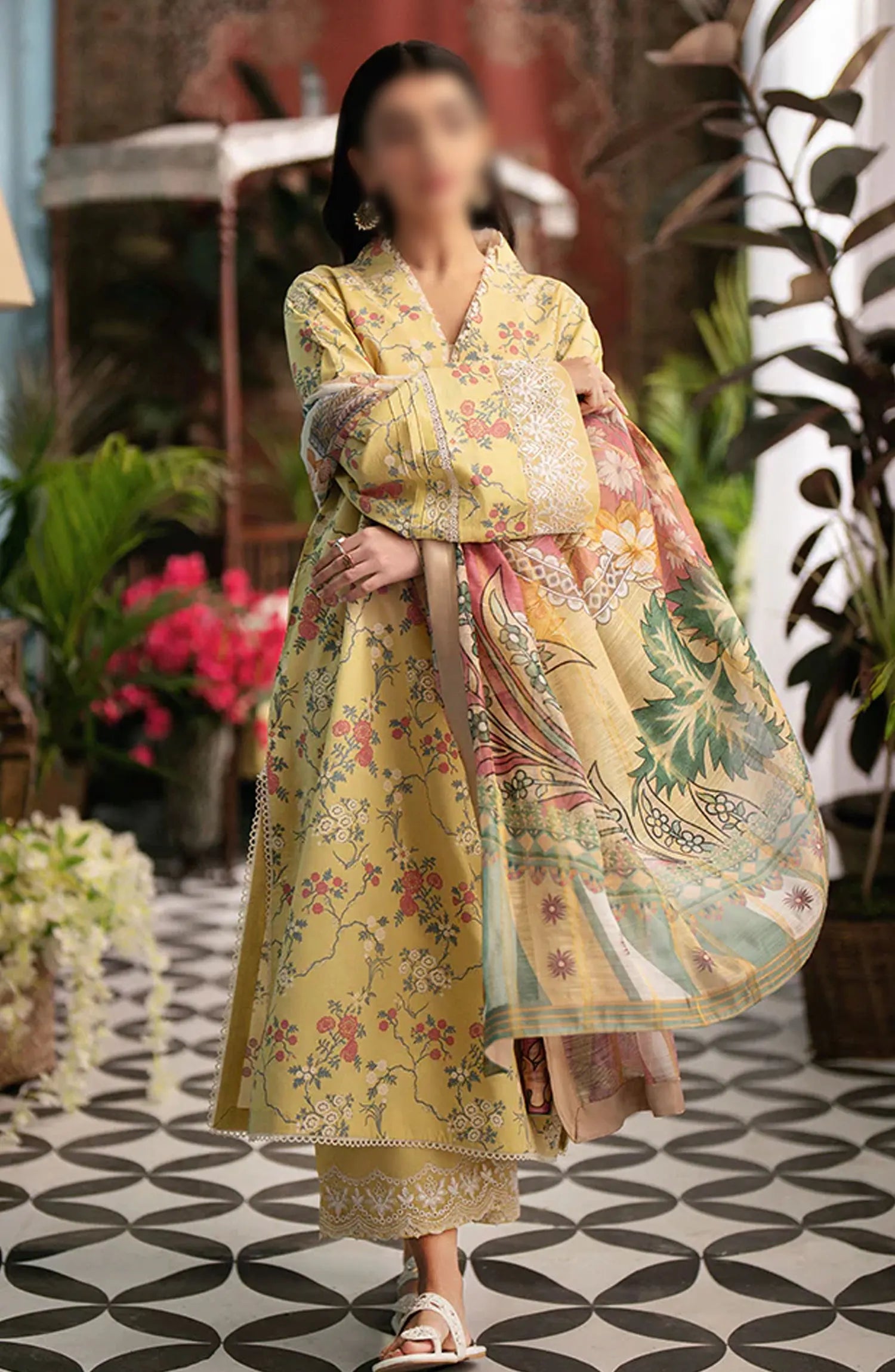 Seran Afsanah Unstitched Luxury Lawn Collection 2024 has been styled in the image for photography and illustrative purposes.