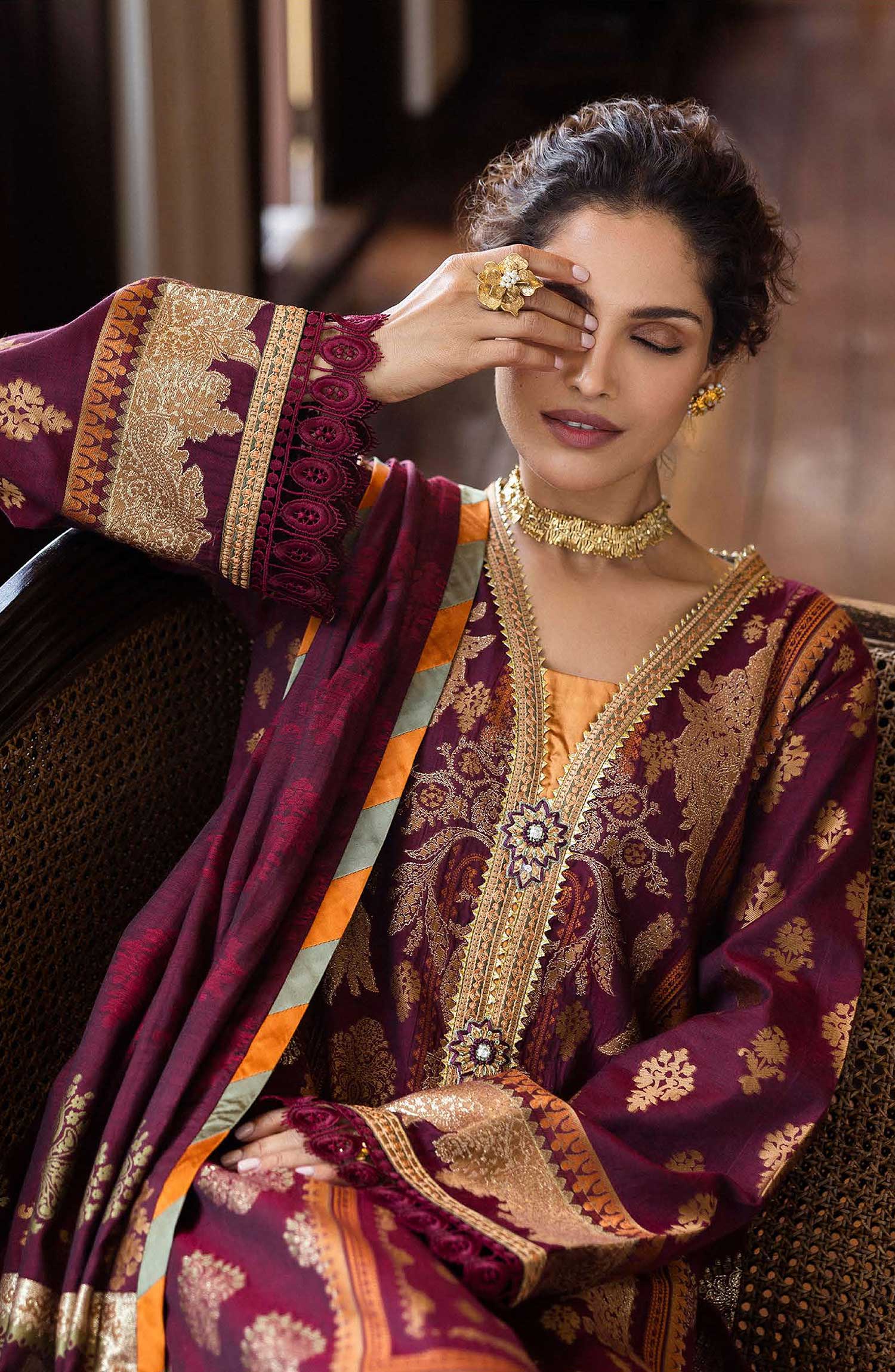 Seraph - Jacquard Lawn 2025 by Mushq has been styled in the image for photography and illustrative purposes.