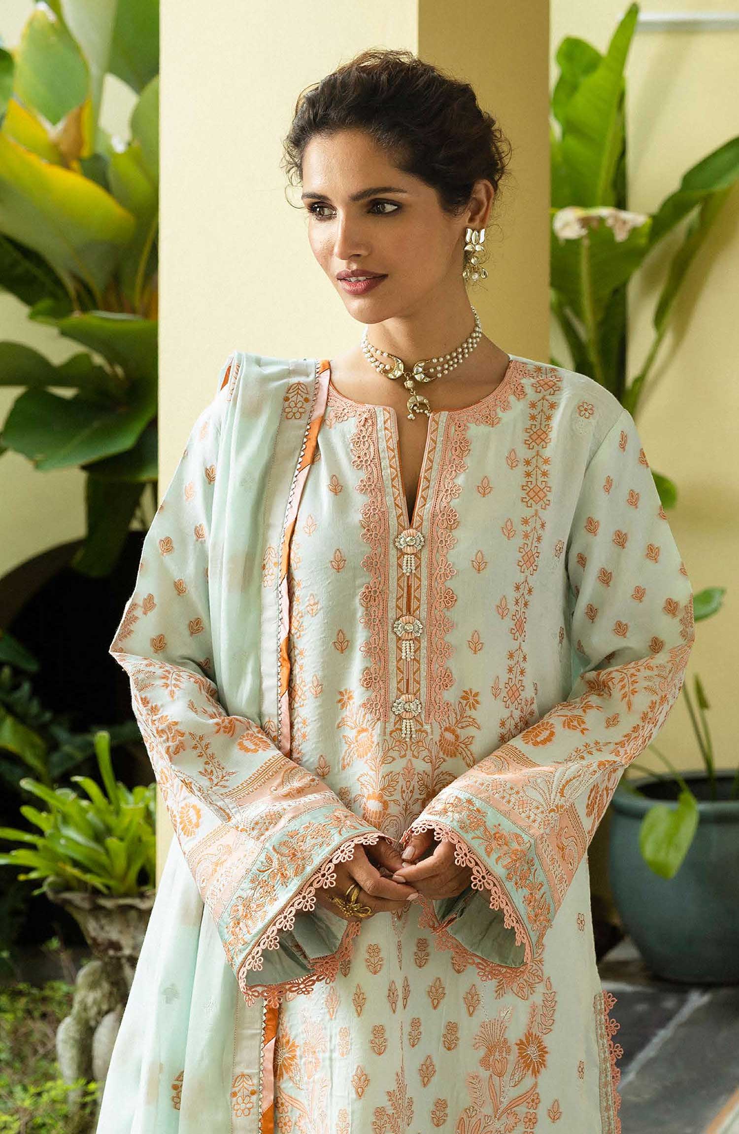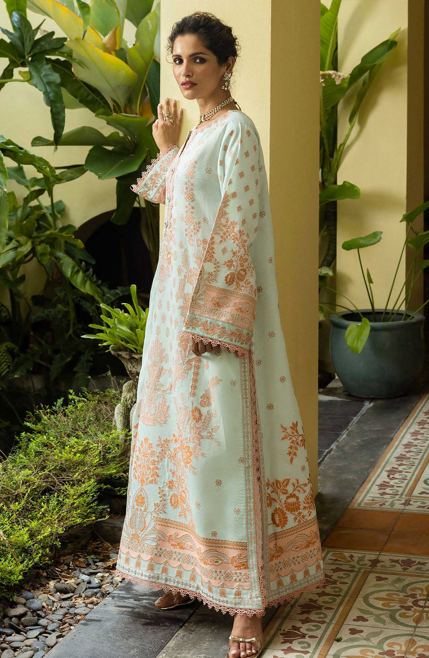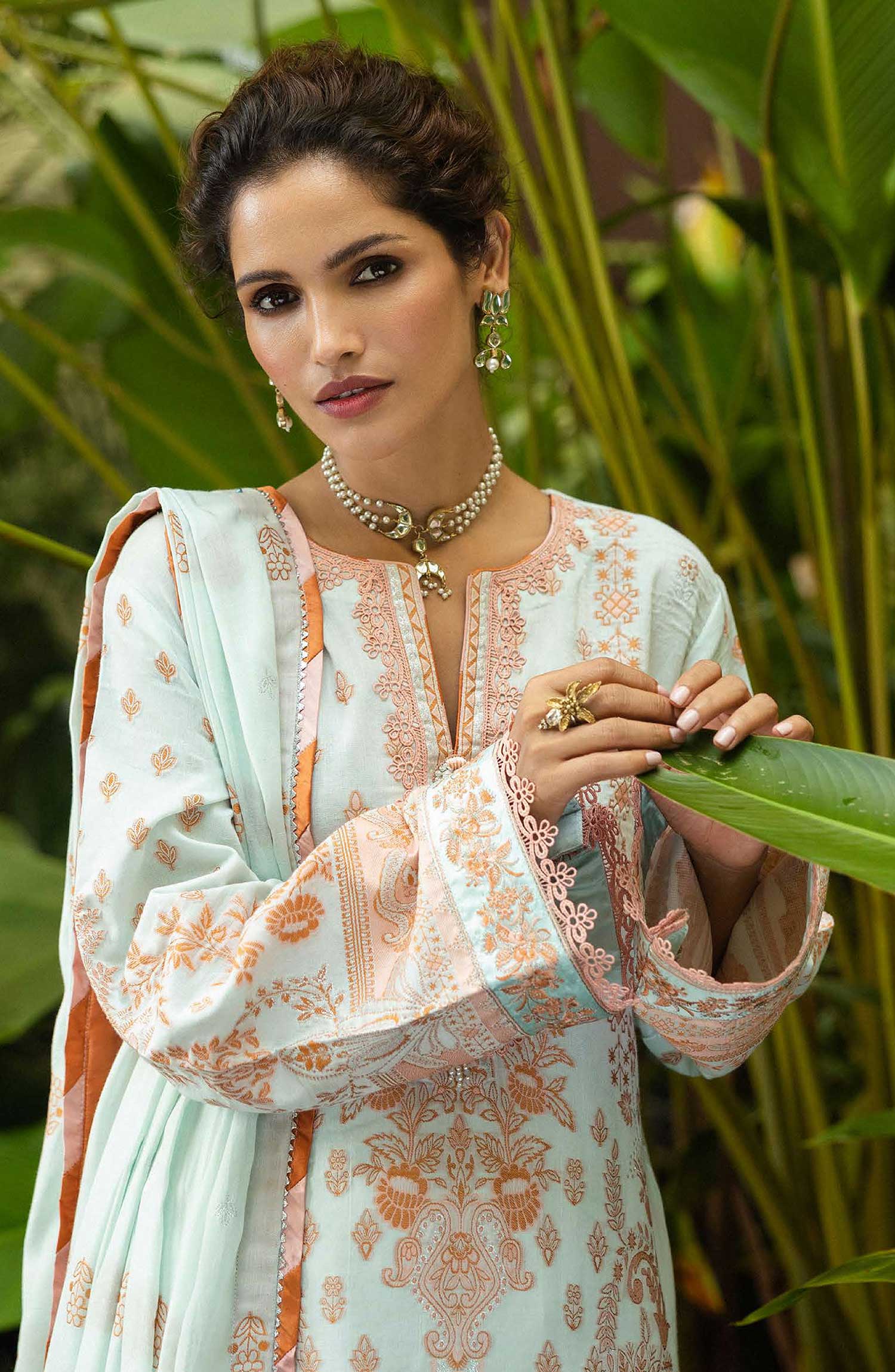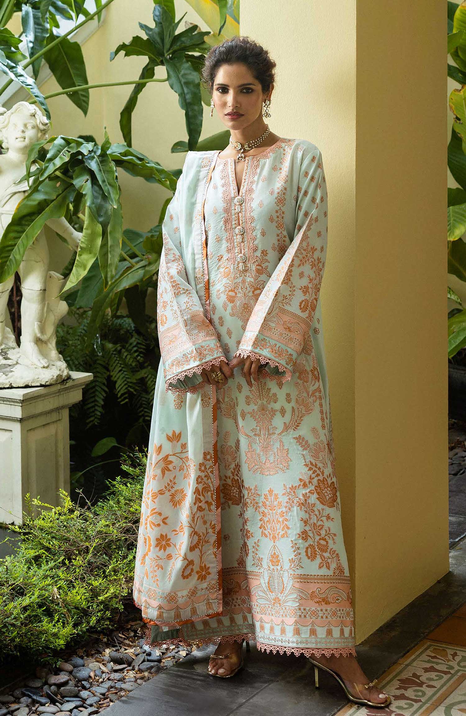 Seraph - Jacquard Lawn 2025 by Mushq has been styled in the image for photography and illustrative purposes.