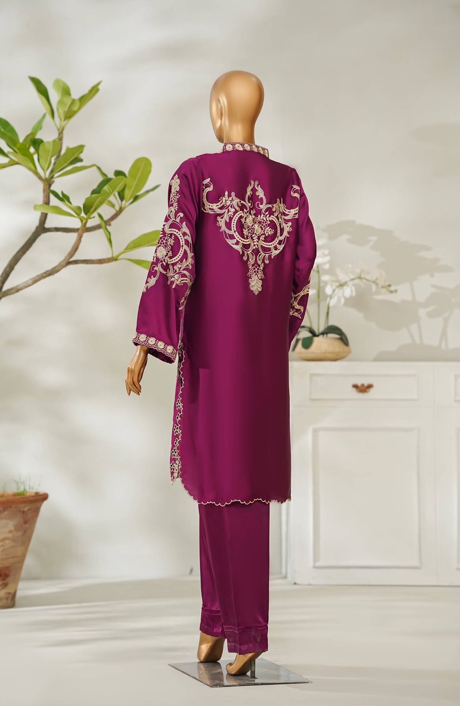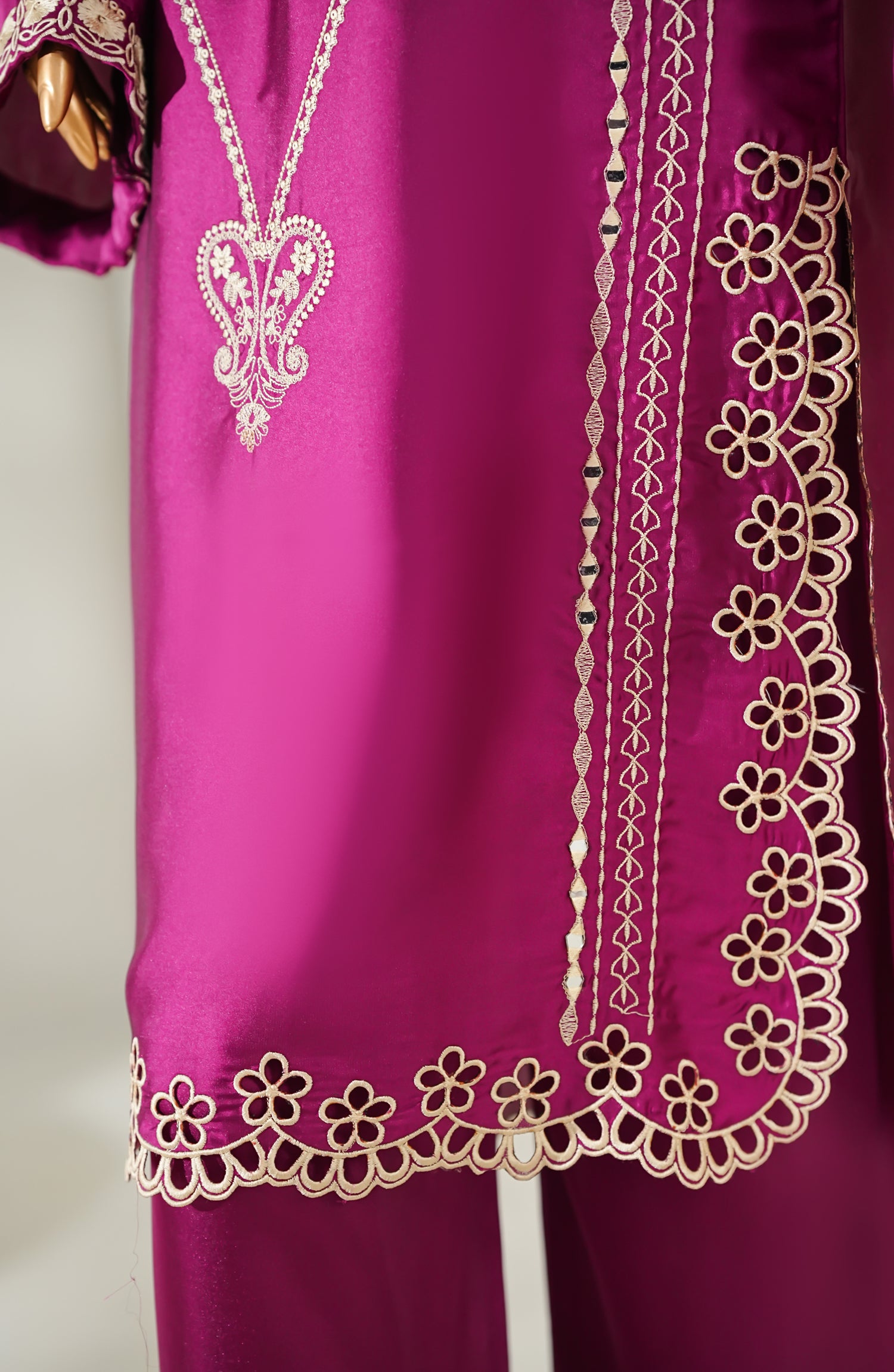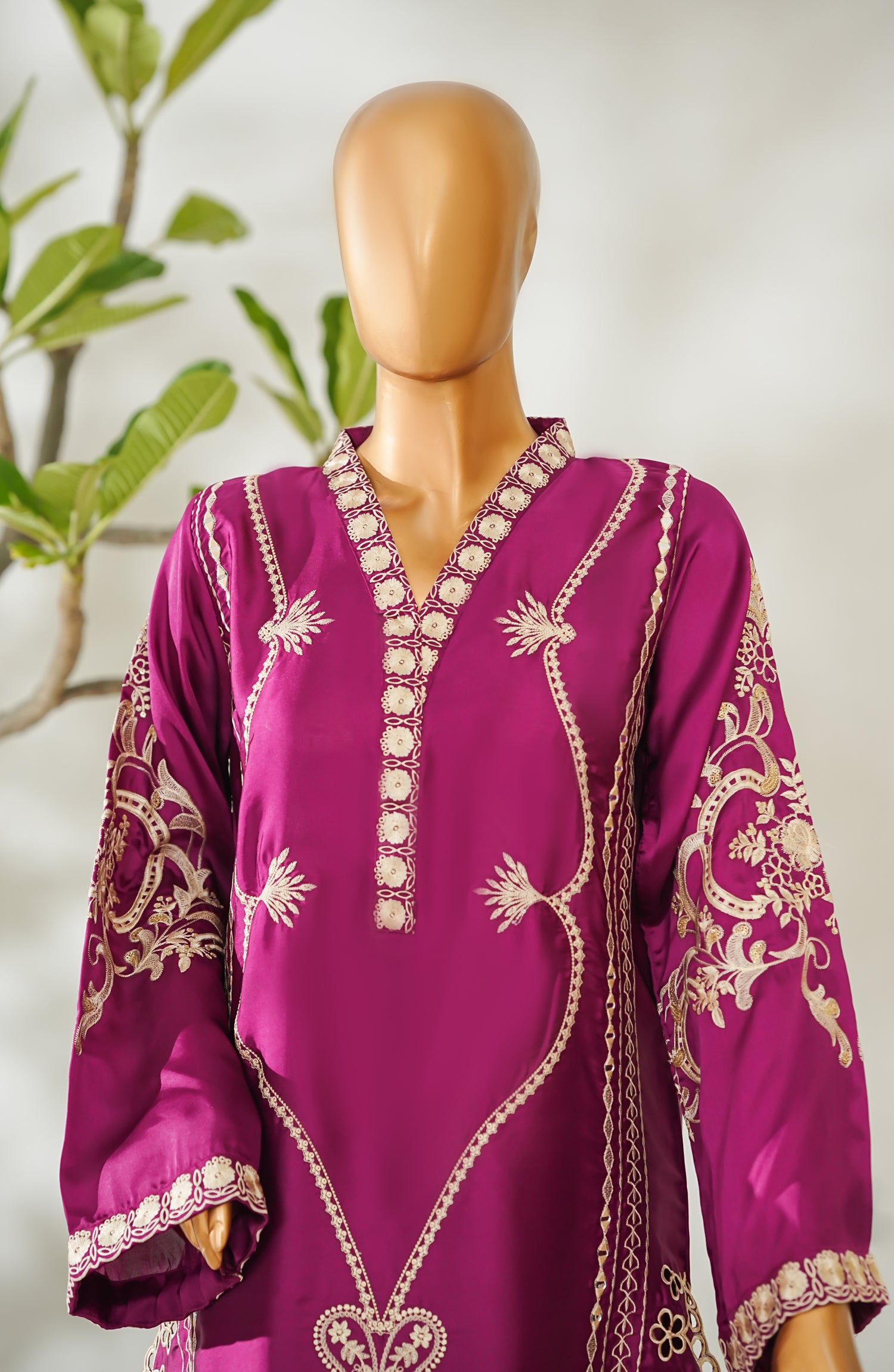 Stitched Shamooz Silk Shirt with Resham Embroidery And Embellishments