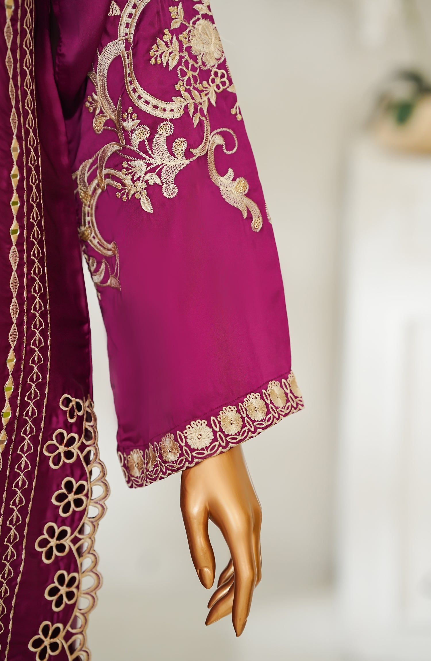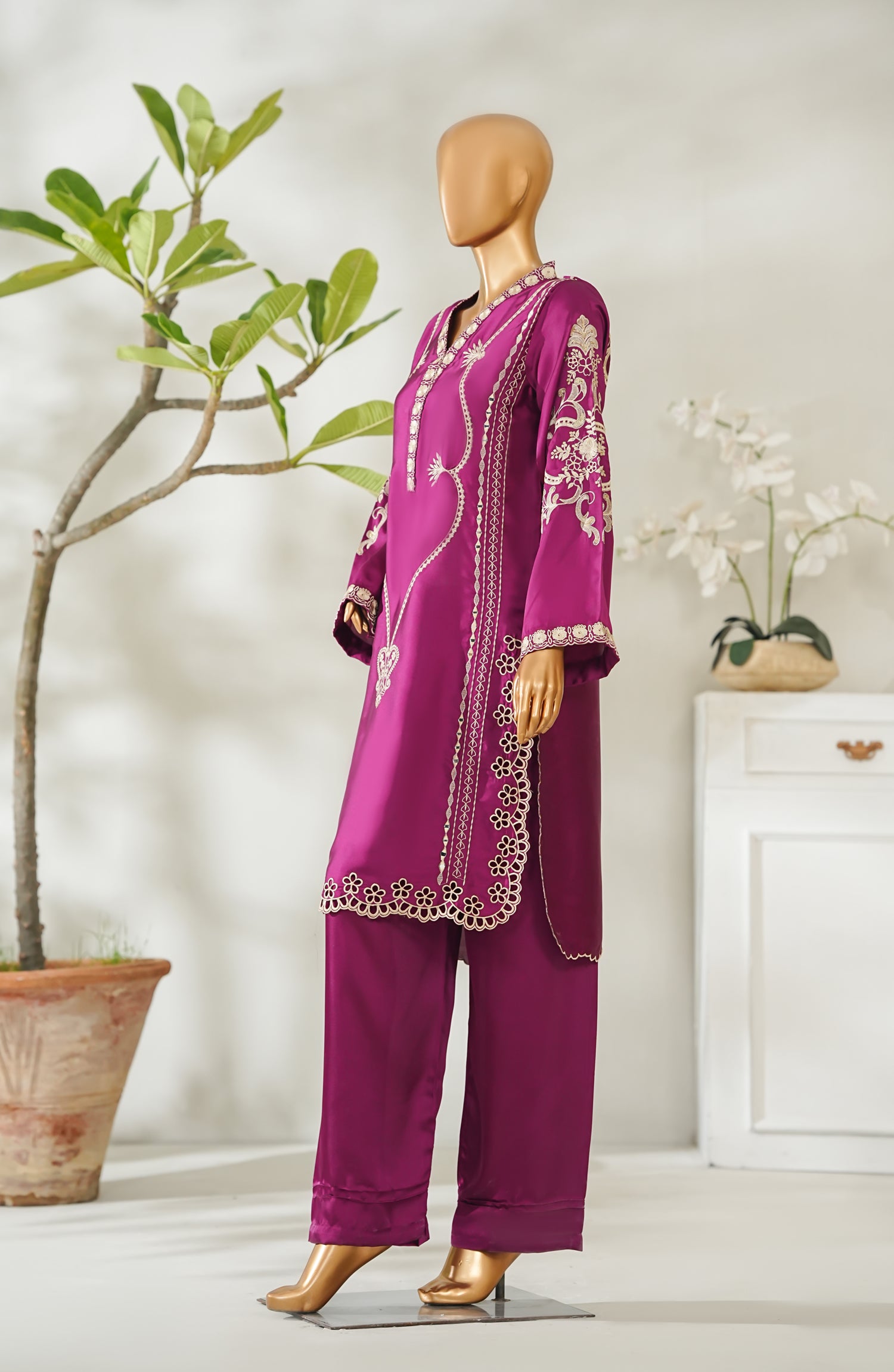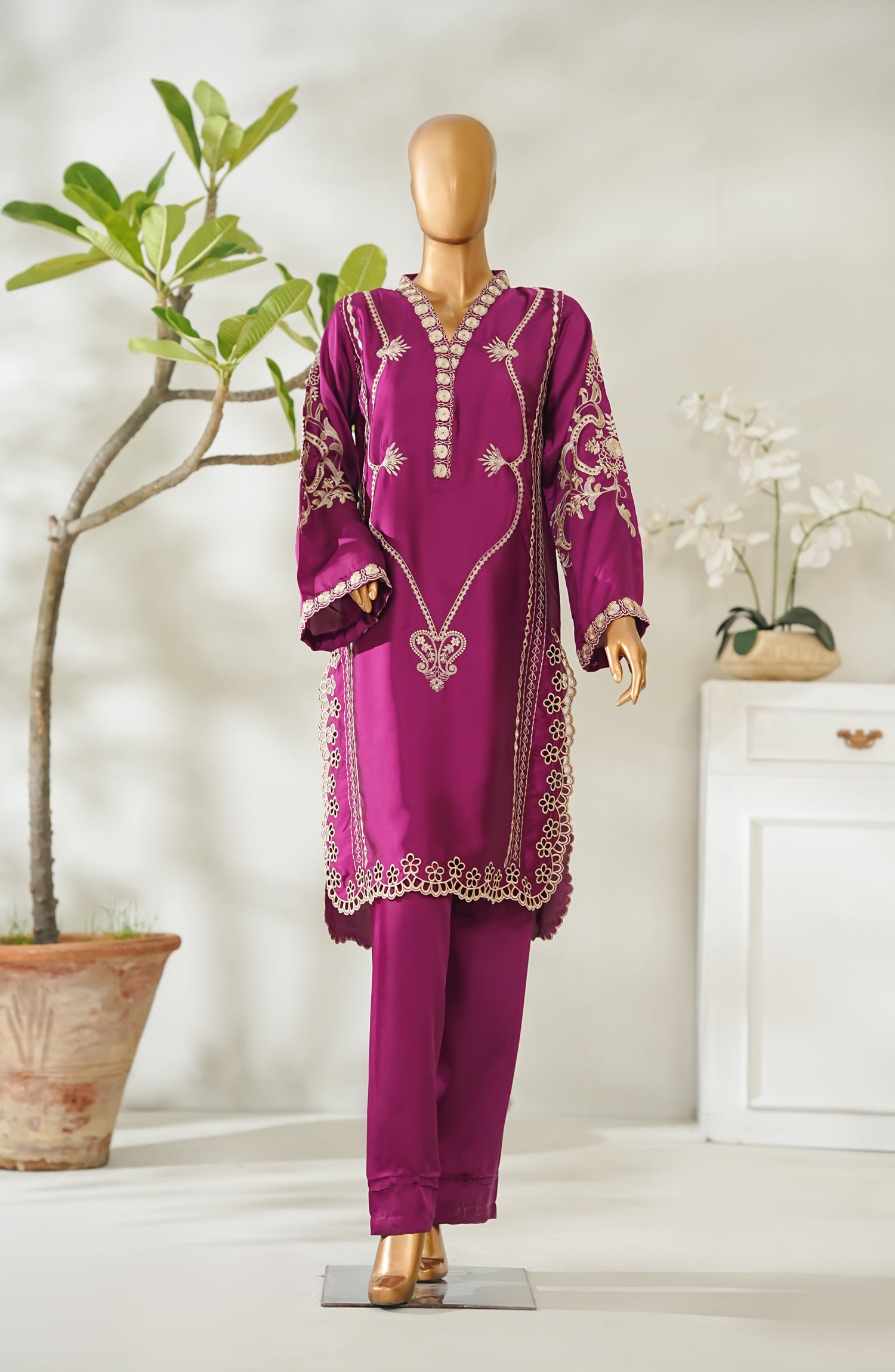 Stitched Shamooz Silk Shirt with Resham Embroidery And Embellishments