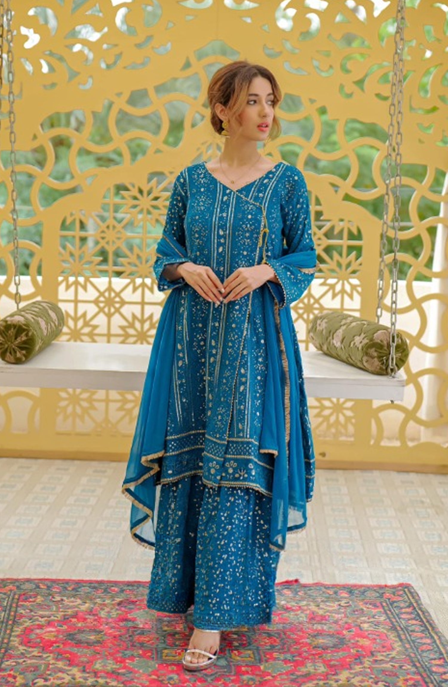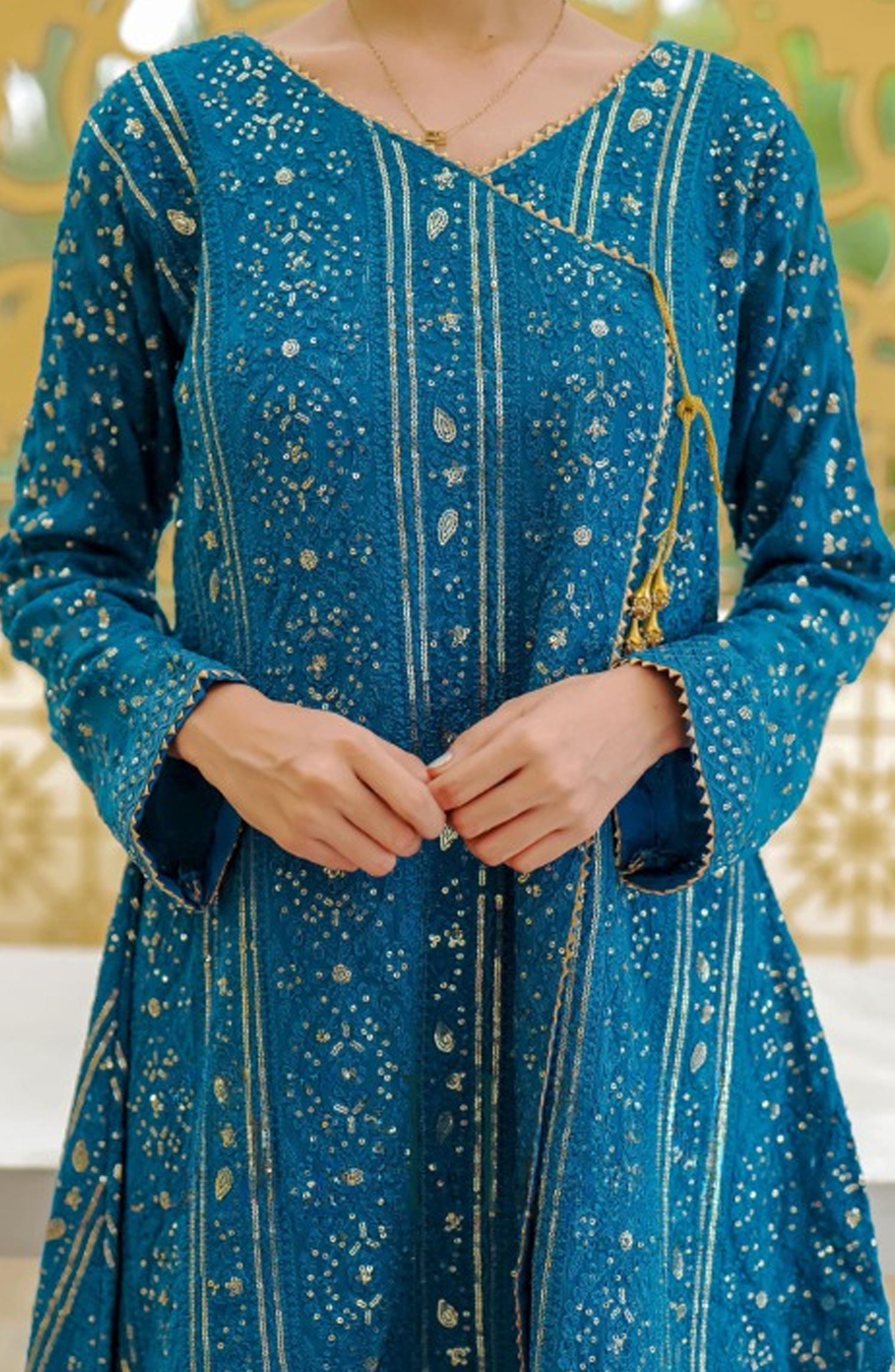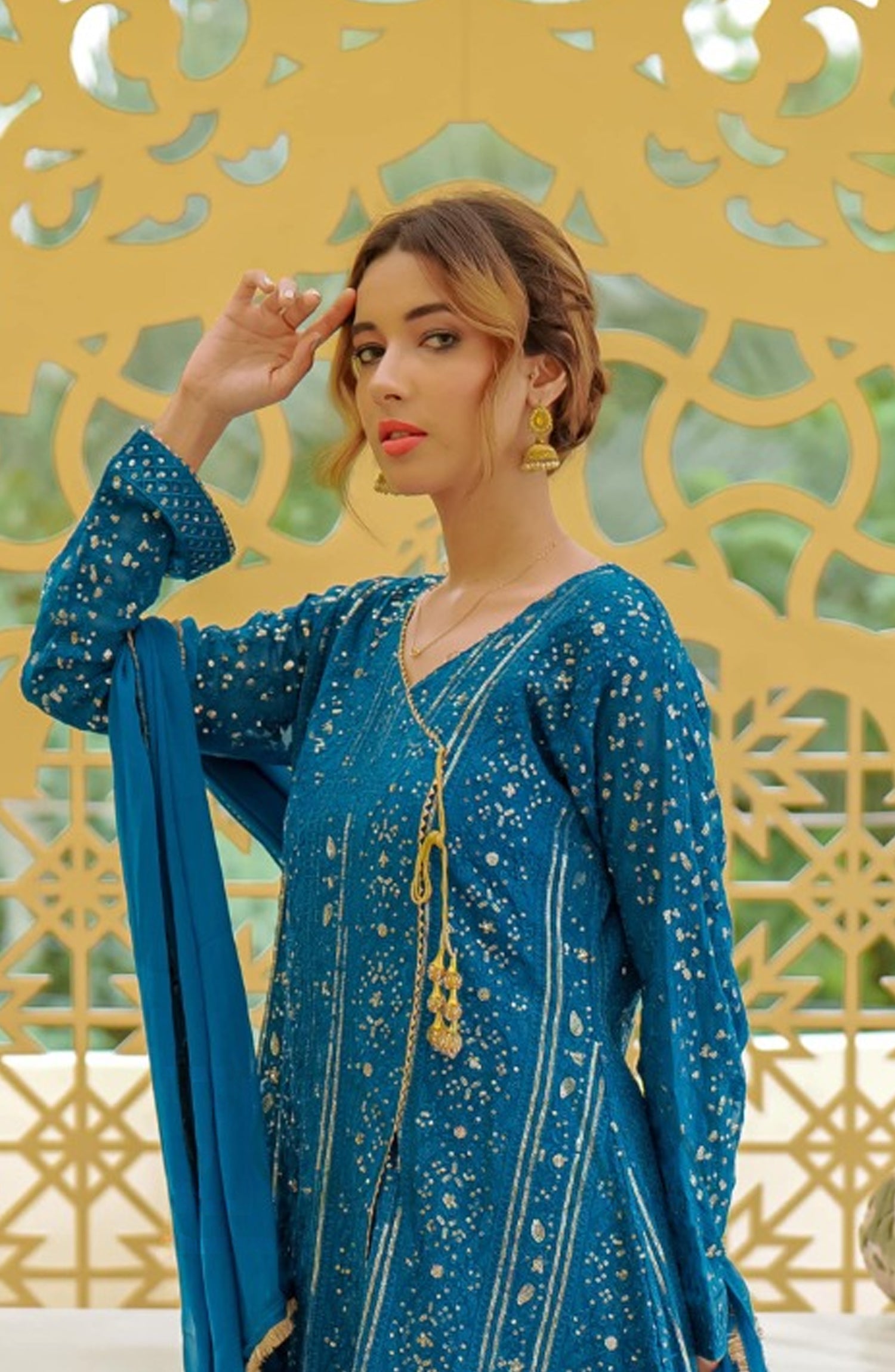 Shaadiyaan by Al Siyaab Embroidered Chiffon Stitched 3 Piece Suit - JANAAN - ALS25SHD - Peacock - Festive Collection