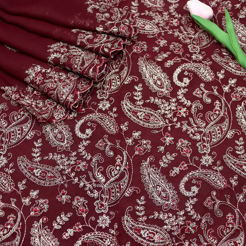Mohar by Amna Khadija Embroidered Shamooz Silk Stitched 2 Piece Suit - AKMS-05 - AM25HARR - Maroon - Winter Collection