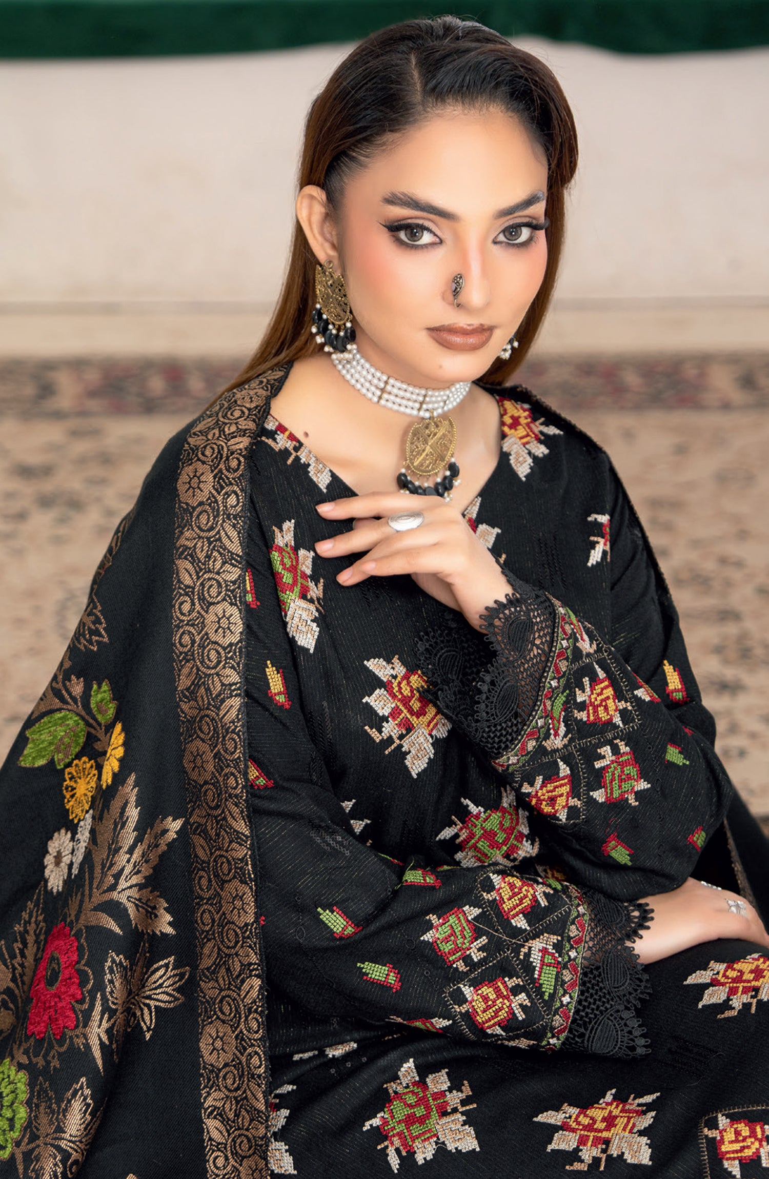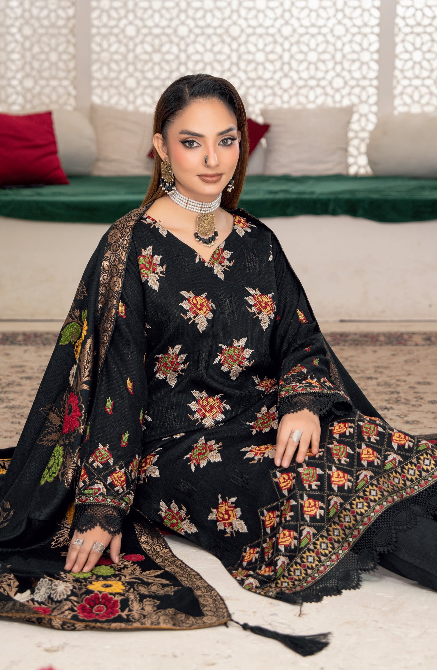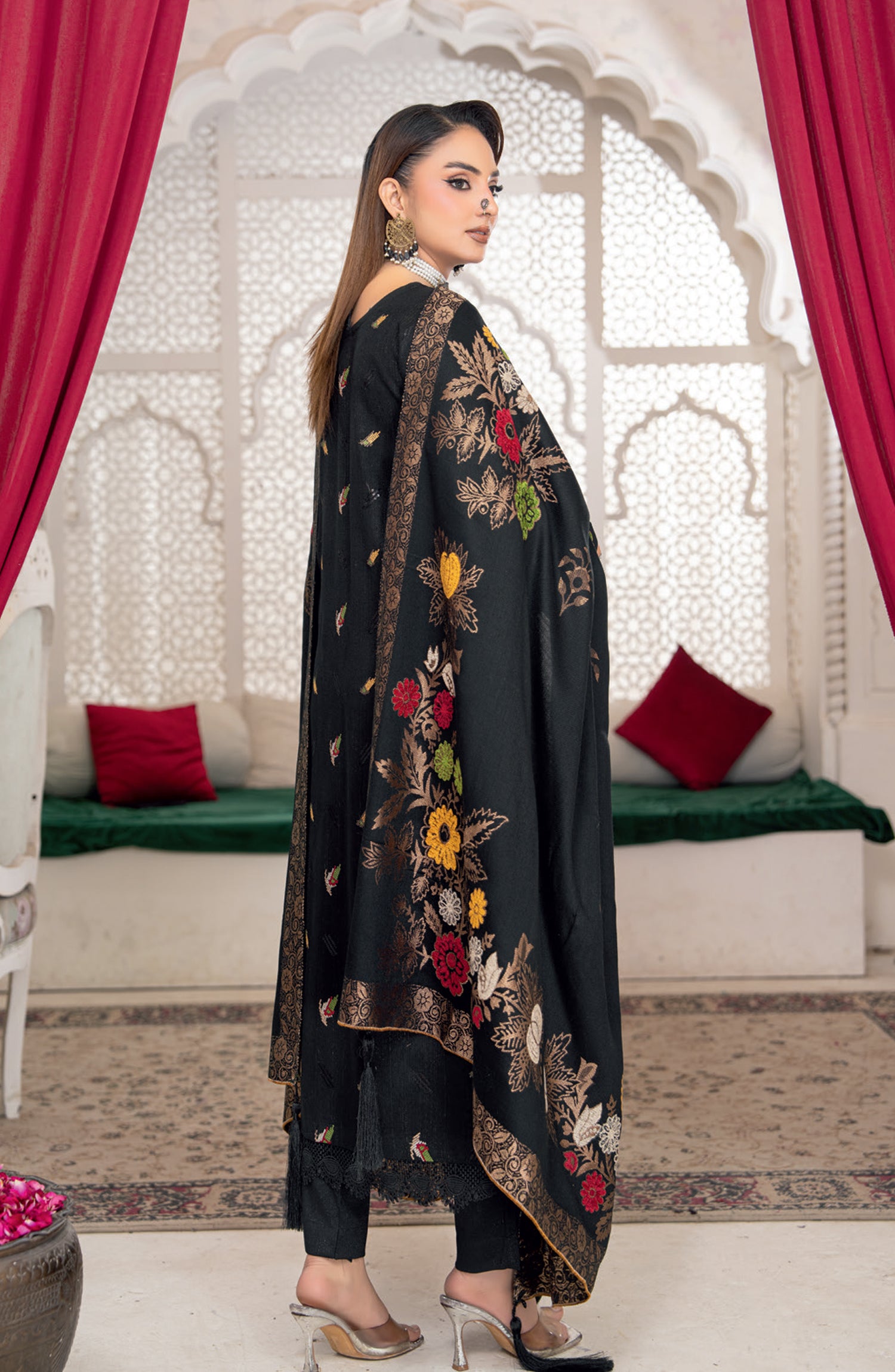 Luxury Embroidered Peach Leather Unstitched 3 Piece Suit with Fancy Jacquard Kani Wool Shawl