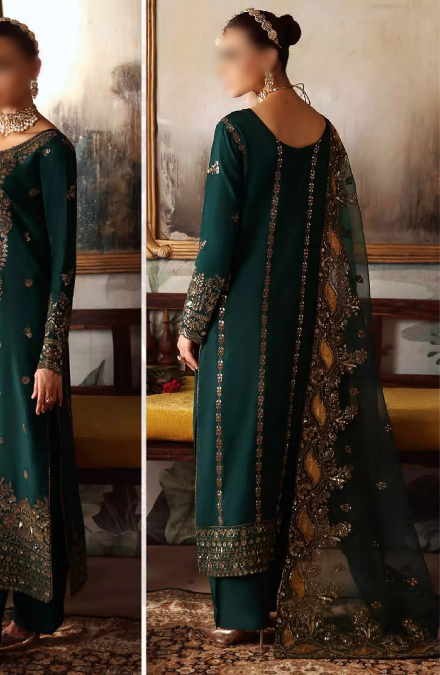 The standard style comes as a long-sleeved kameez with dupatta and trouser/shawlar.