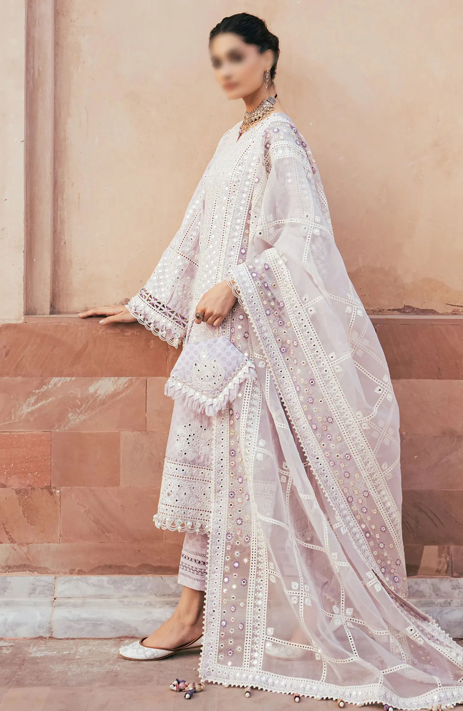 Shahkaar Eid Festive Lawn SS 2024 by Jazmin has been styled in the image for photography and illustrative purposes.
