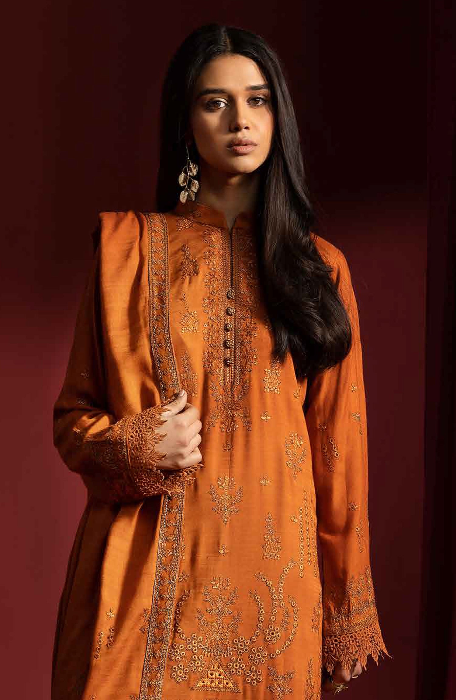 Supreme Embroidered Peach Unstitched 3 Piece Suit