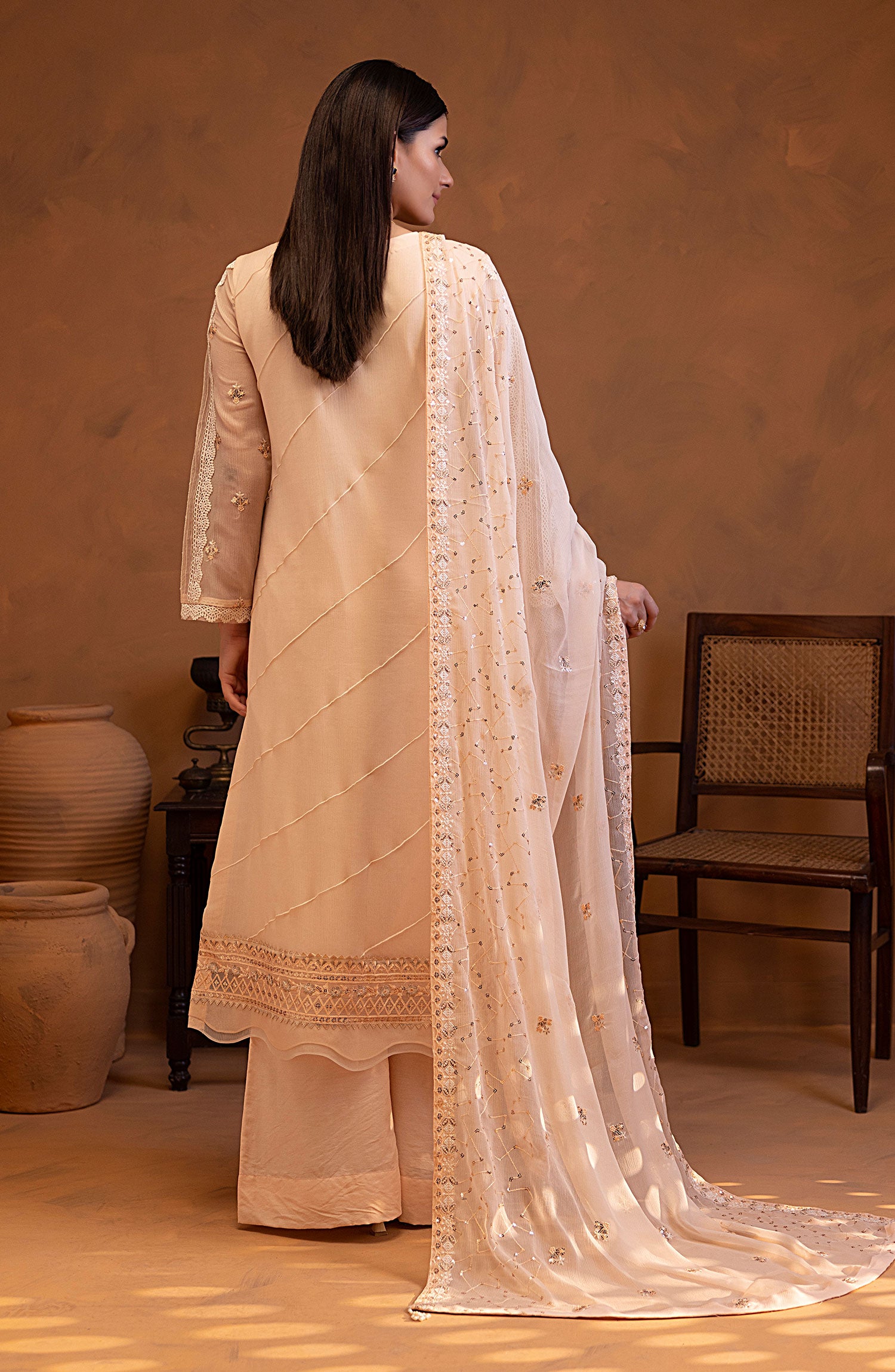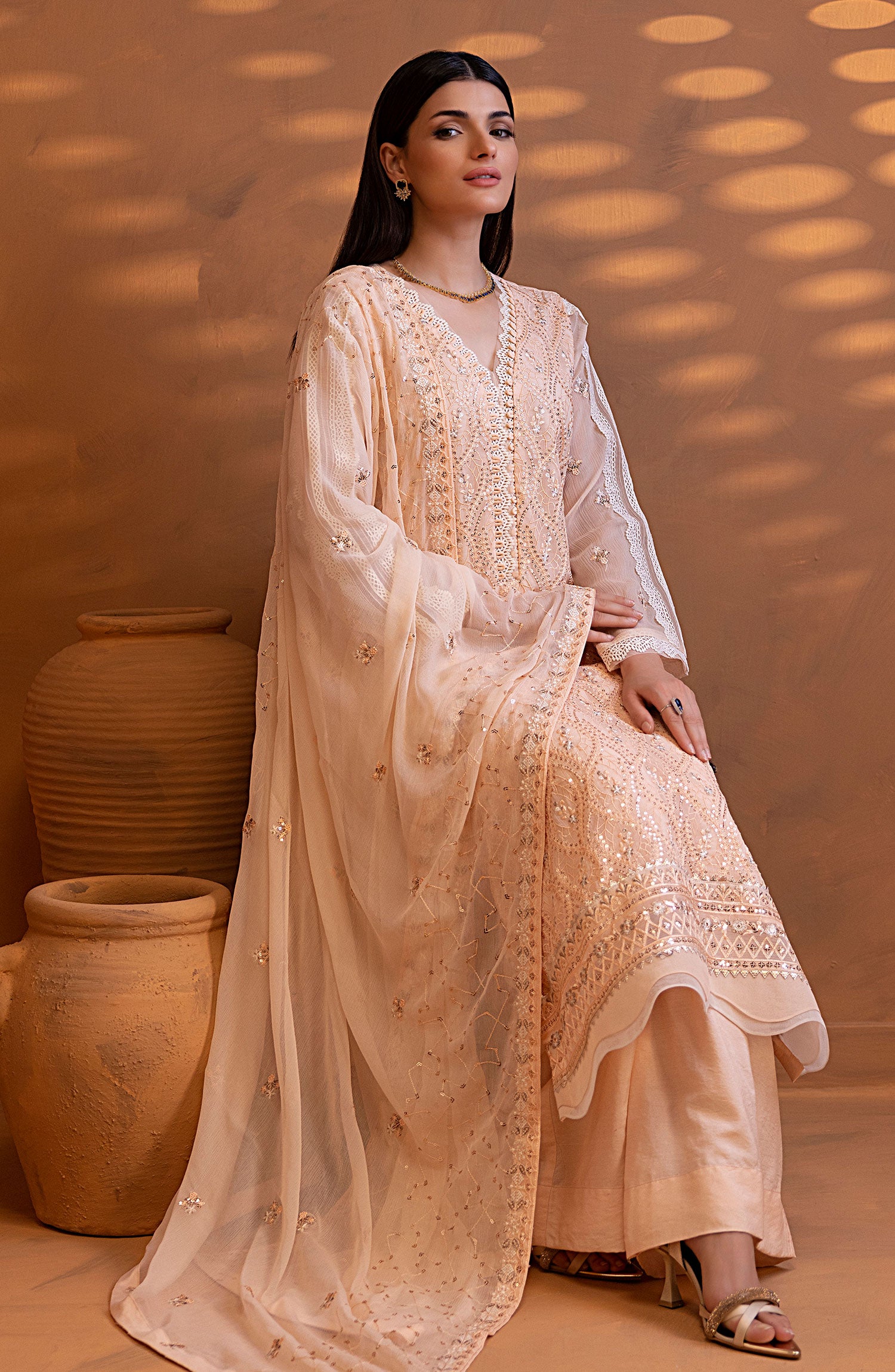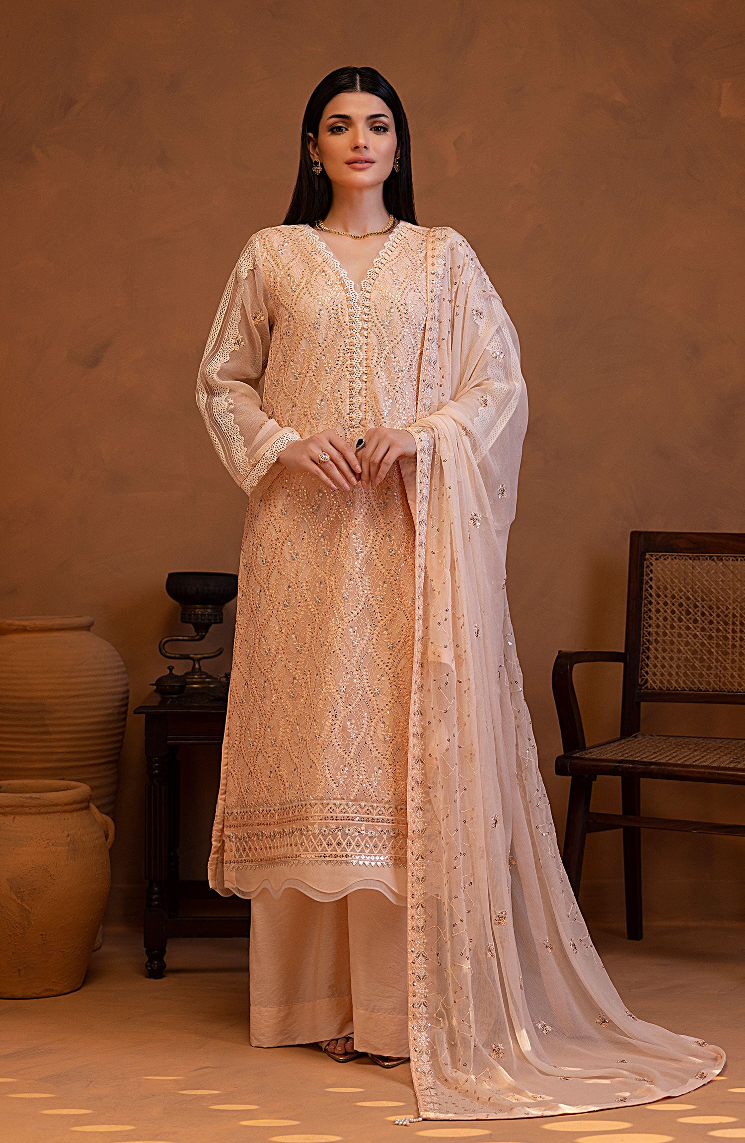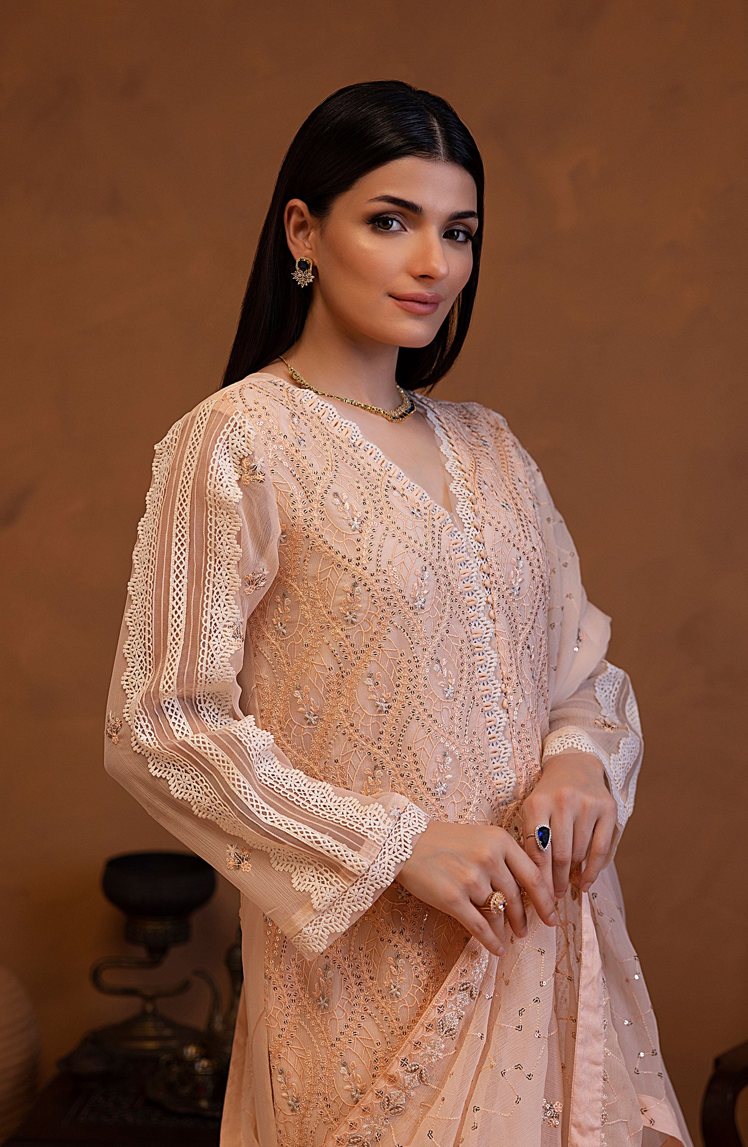 Amna Khadija Embroidered Crinkle Chiffon Unstitched 3 Piece Suit - D-03 - AM25LXC - Peach - Formals Collection