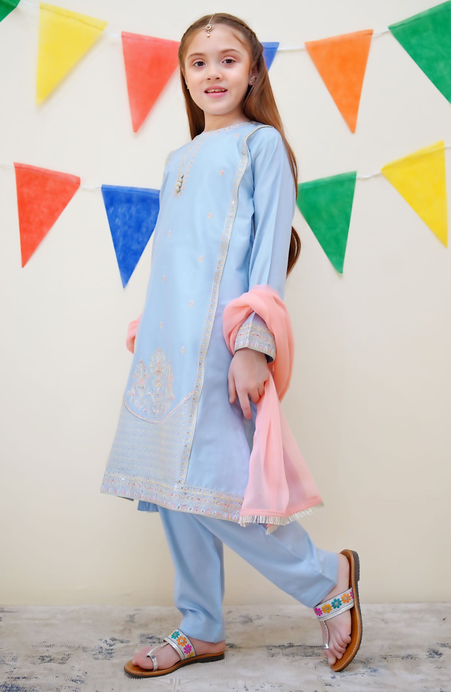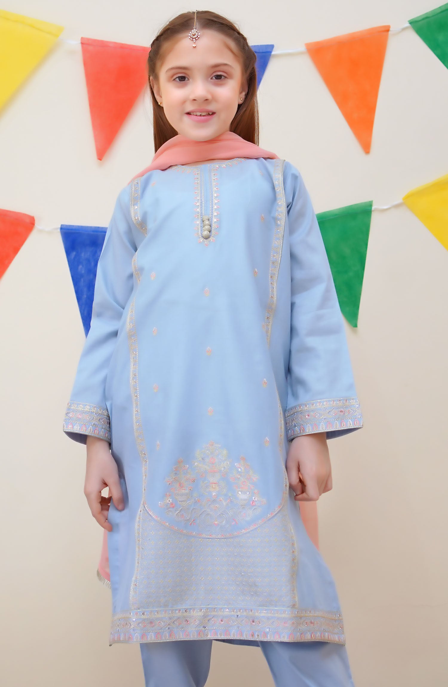 Blue Cotton Dresses | Blue Dresses | Cotton 3 Piece Suits | Girls | Kids | Shanzey | Shanzey Girls Festive Collection | Shanzey Girls Festive Collection | Shanzey Jashan e Eid RTW Girls Festive Collection 2025 | Trending