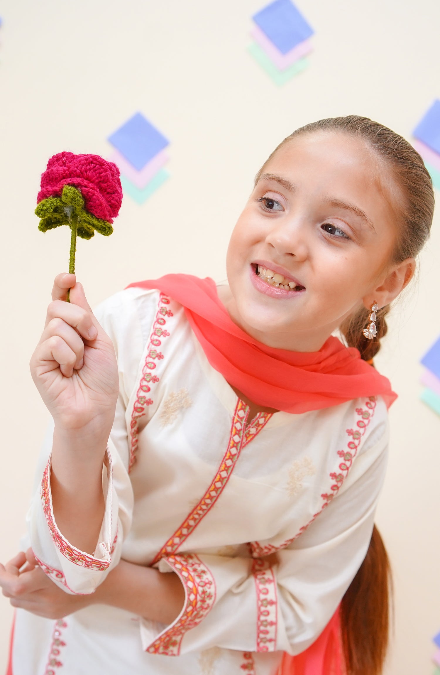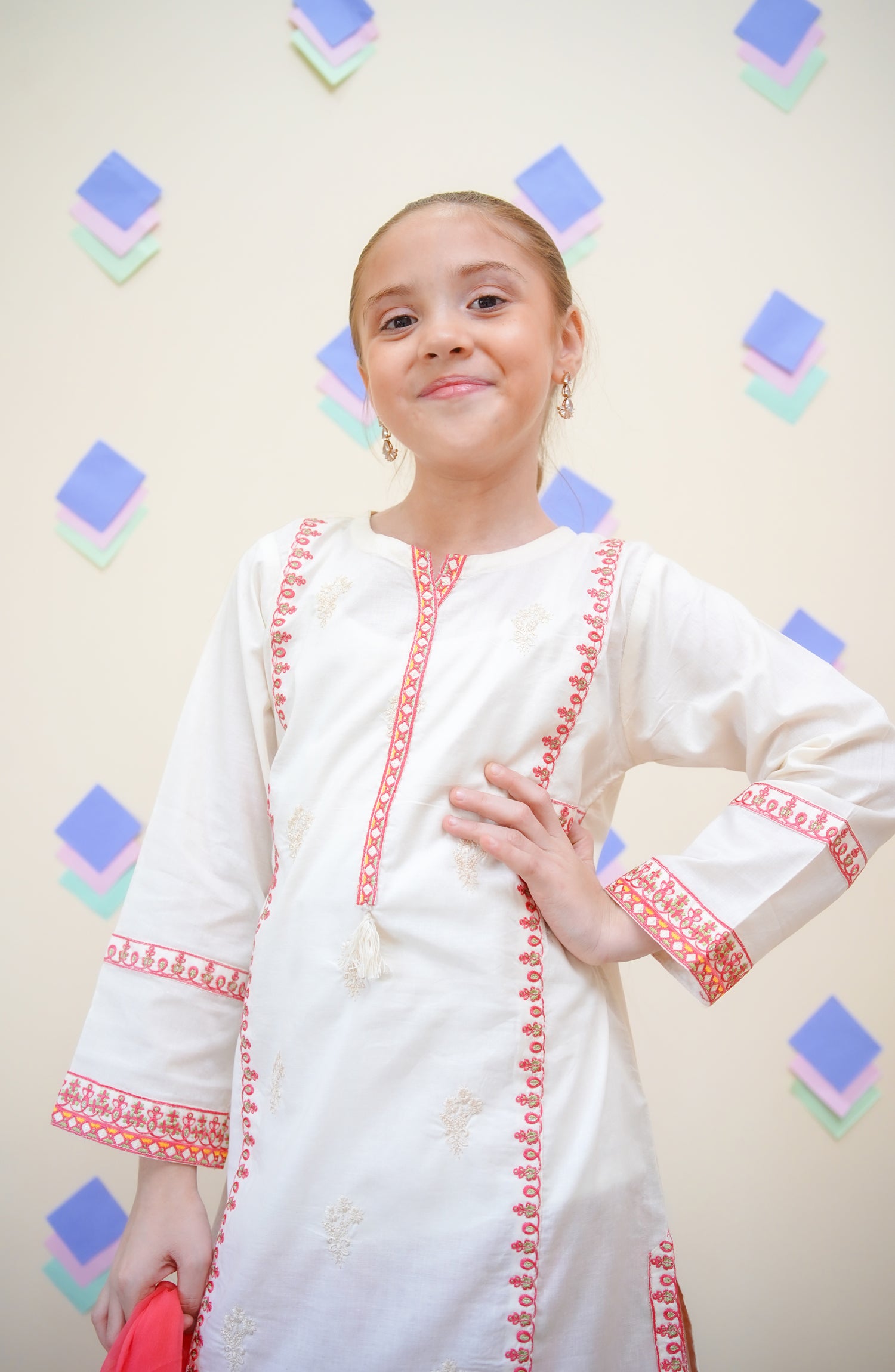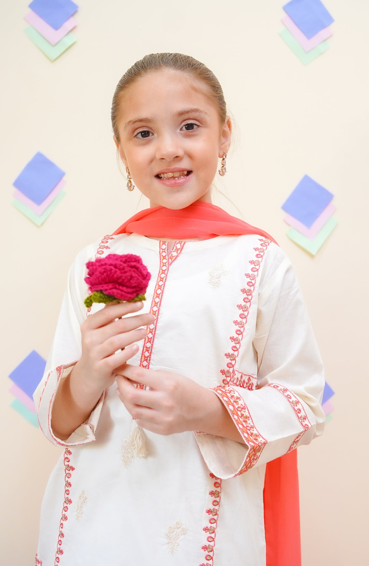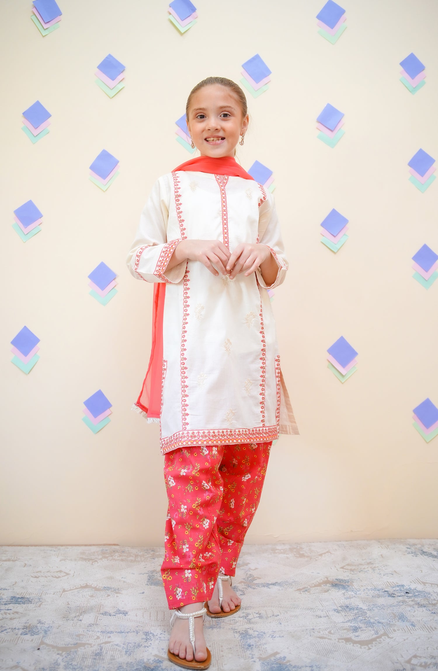 Embroidered & Embellished 3 Pc Suit with Digital Printed Farshi Shalwar and Chiffon Dupatta