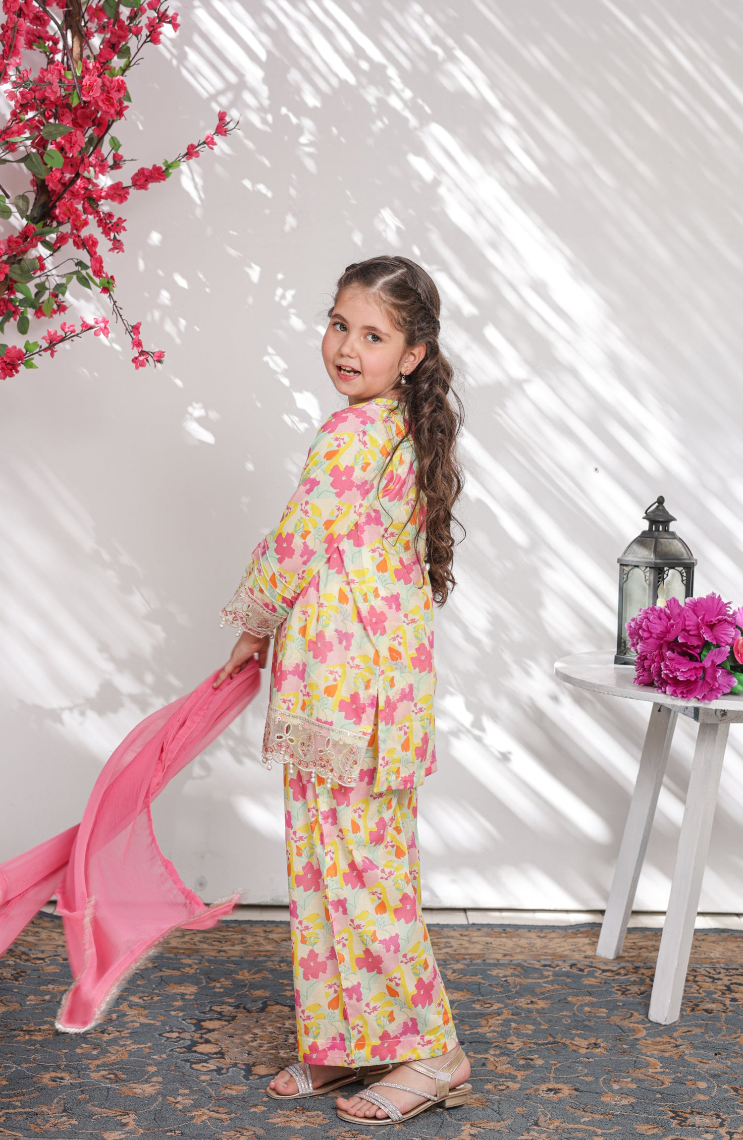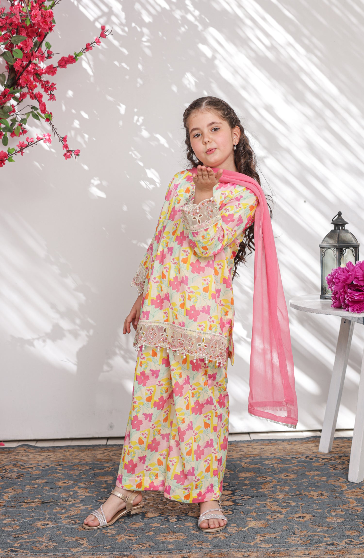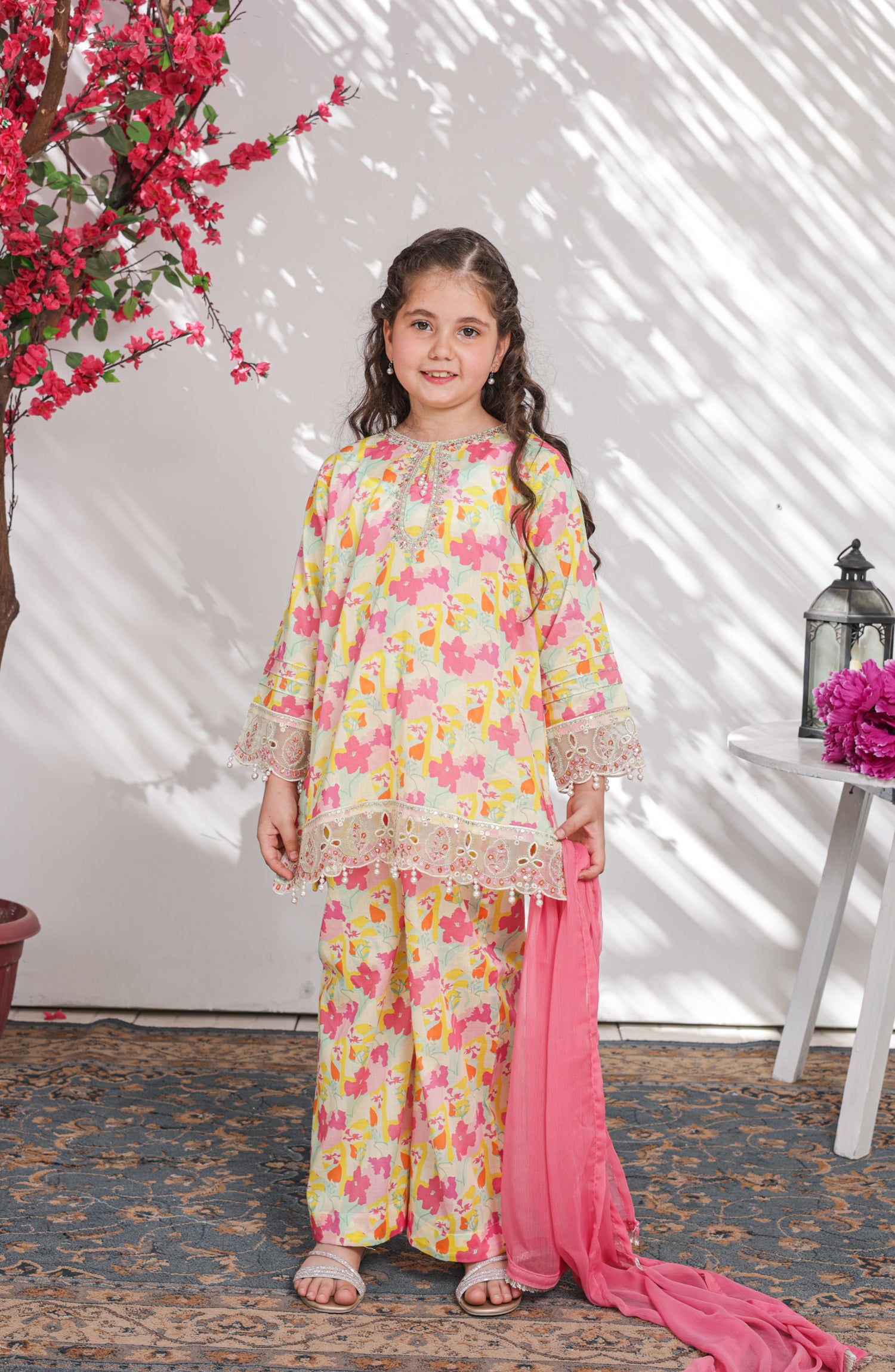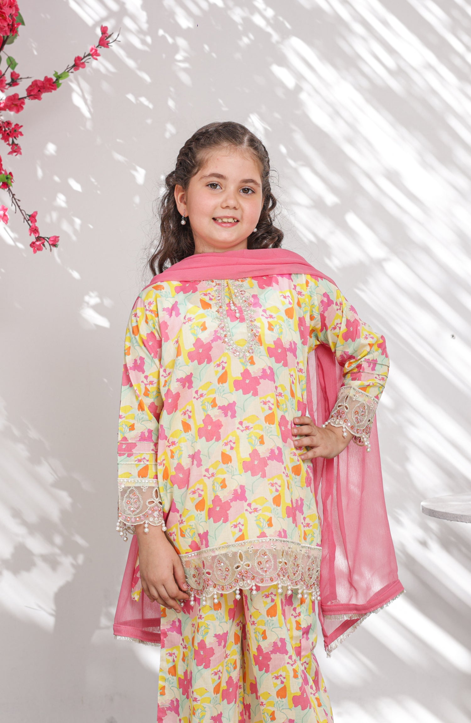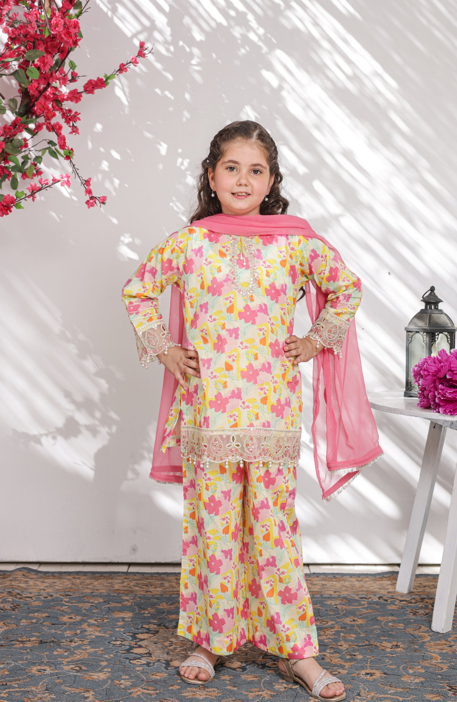Embroidered and Embellished Printed Lawn Co-ords with Chiffon Dupatta