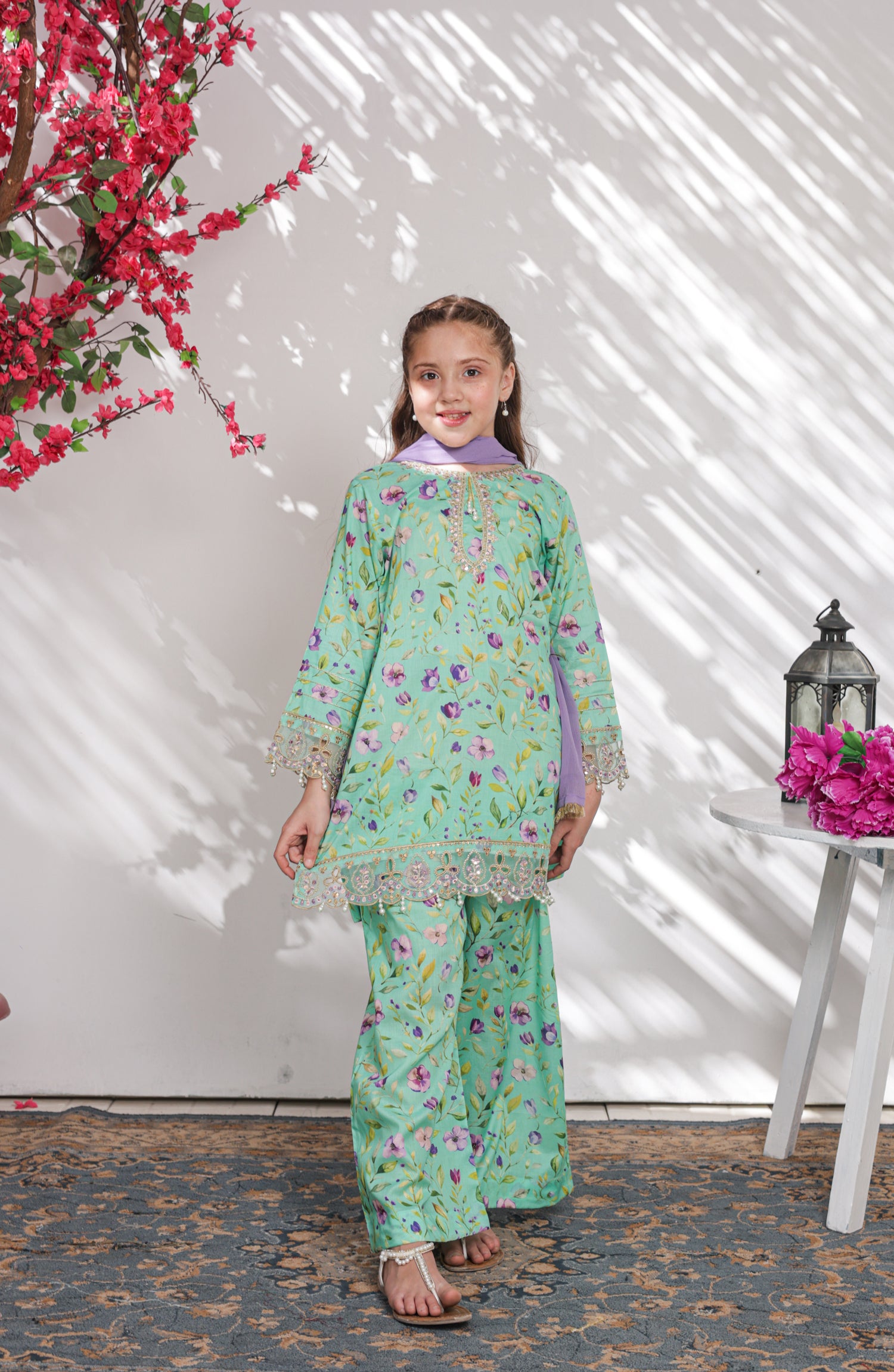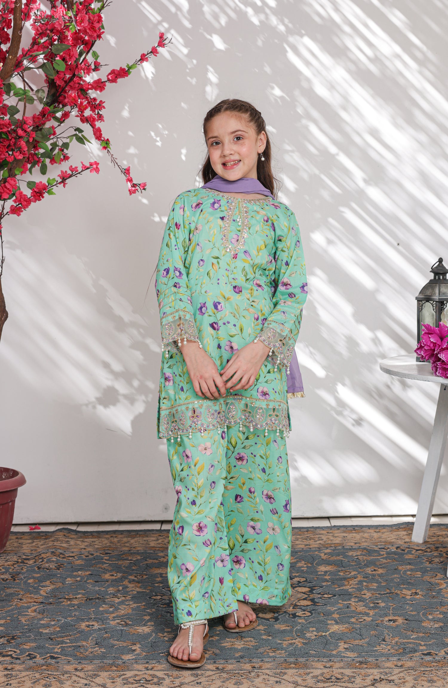 Embroidered and Embellished Printed Lawn Co-ords with Chiffon Dupatta