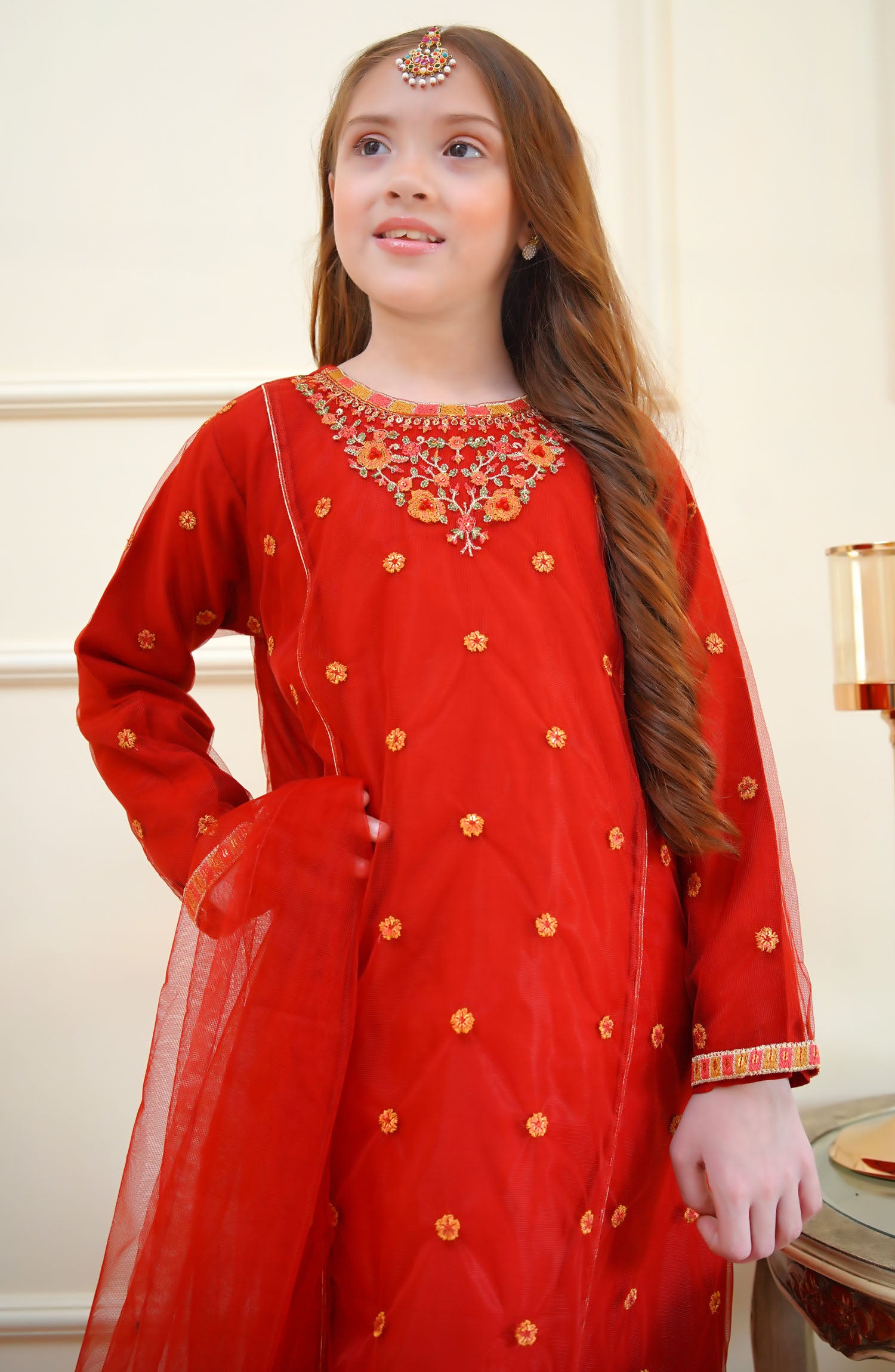Girls | Kids | New Arrival | Ready To Wear Festive Wear | Red Dresses | Shanzey | Shanzey RTW Meethi Eid Girls Formal Edit 2025 | Shop by Season All Seasons