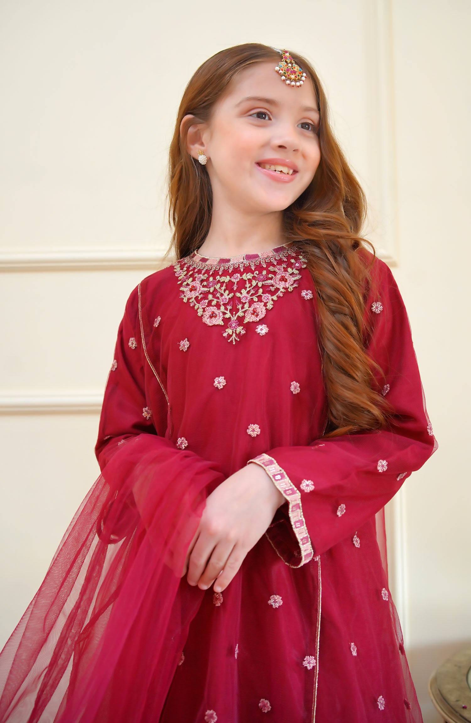 Shanzey Embroidered Net Stitched 3 Piece Suit - SHK-4012 - SHZ25MEF - Magenta - Girls Formal Collection