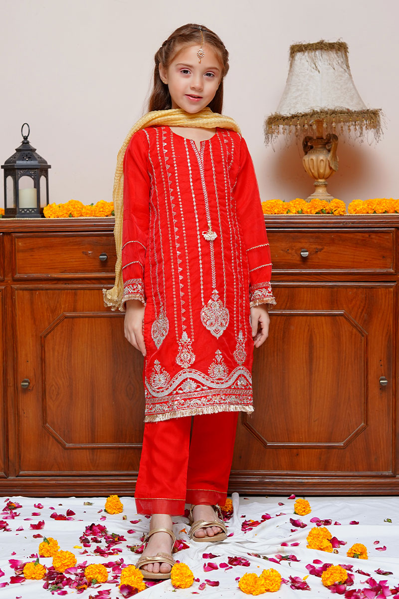 The standard style comes as a long-sleeved kameez with dupatta and trouser .