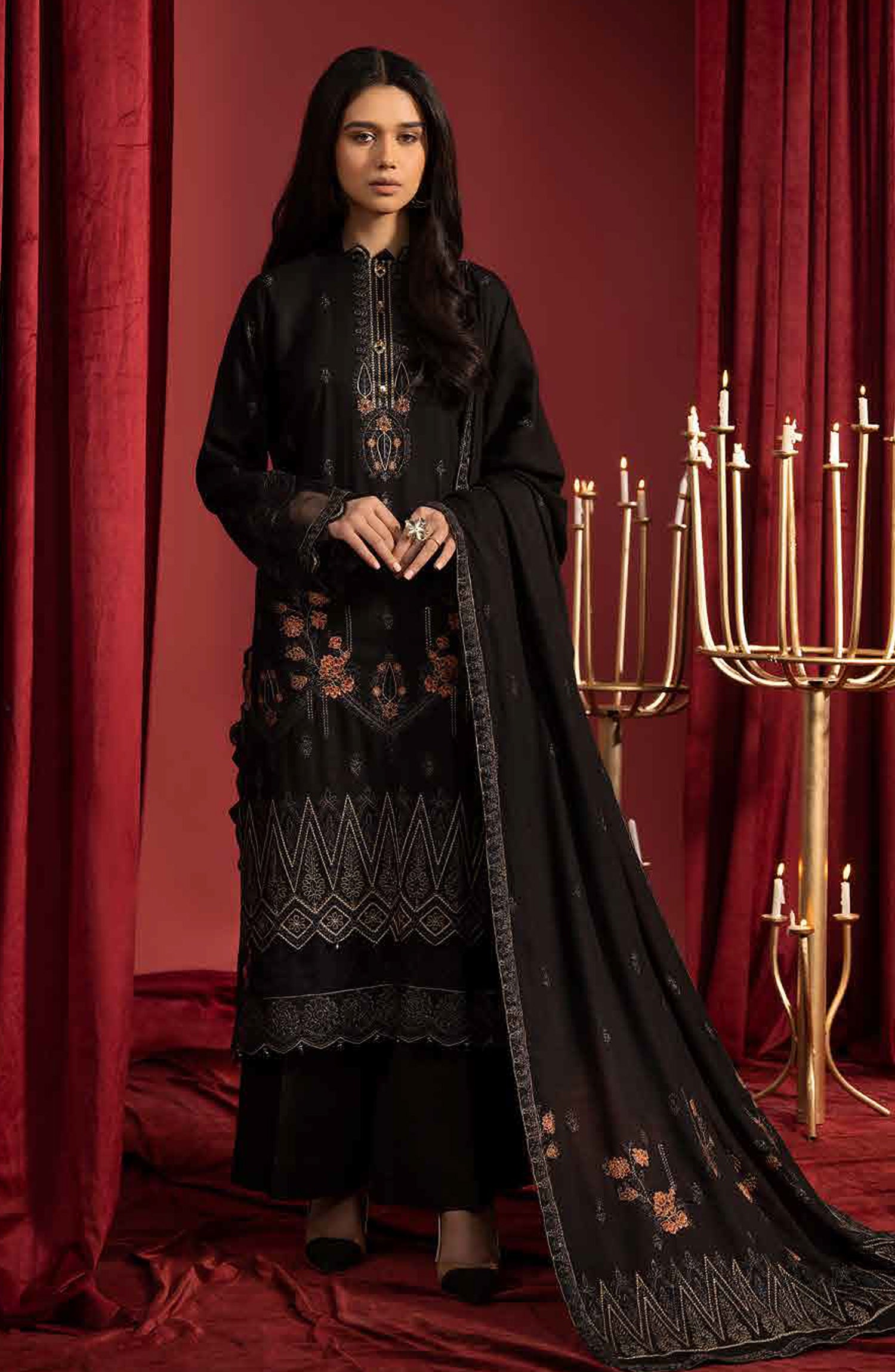 Supreme Embroidered Peach Unstitched 3 Piece Suit