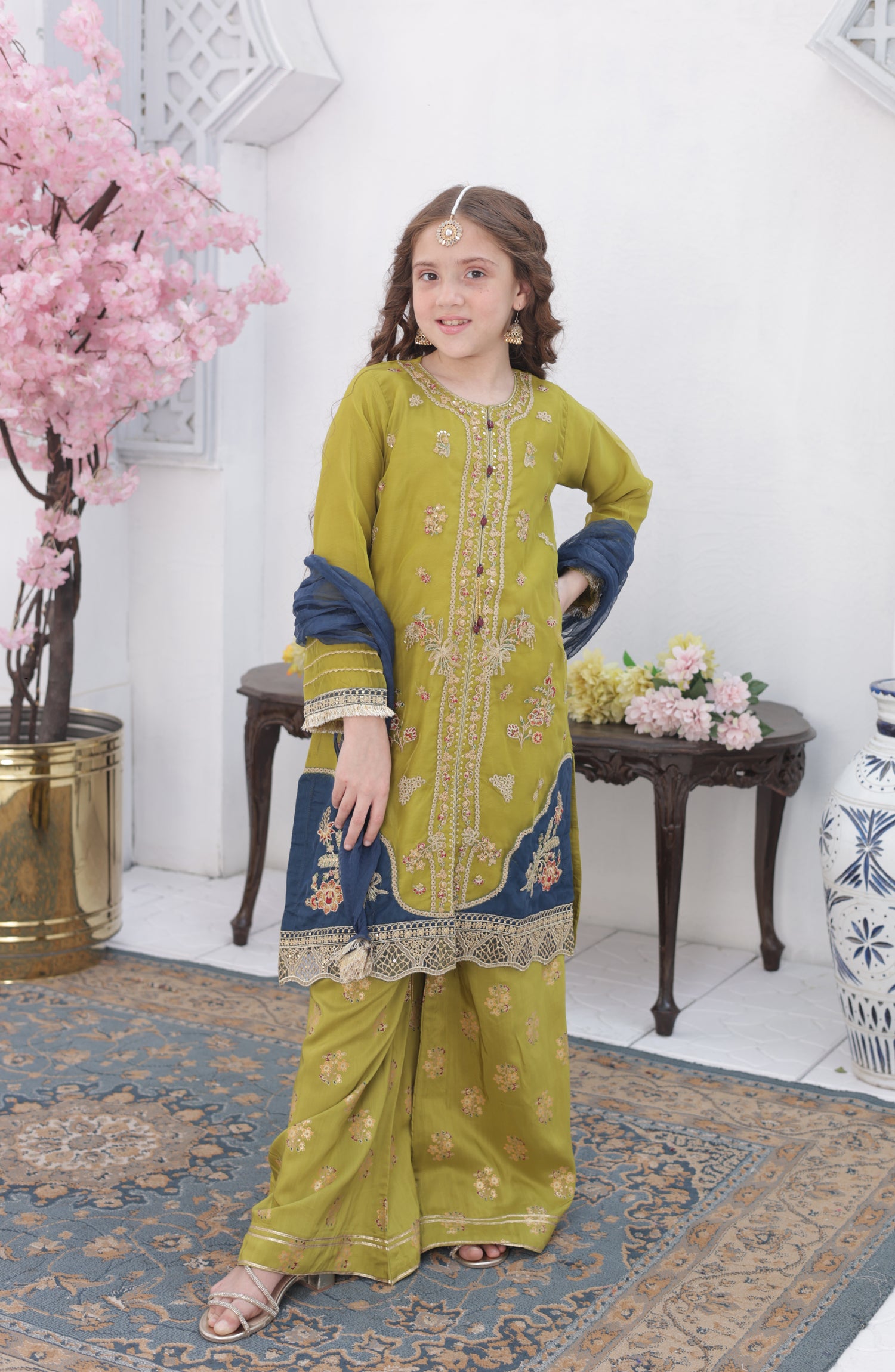 Embroidered and Embellished Front Open Organza Shirt with Silk Inner