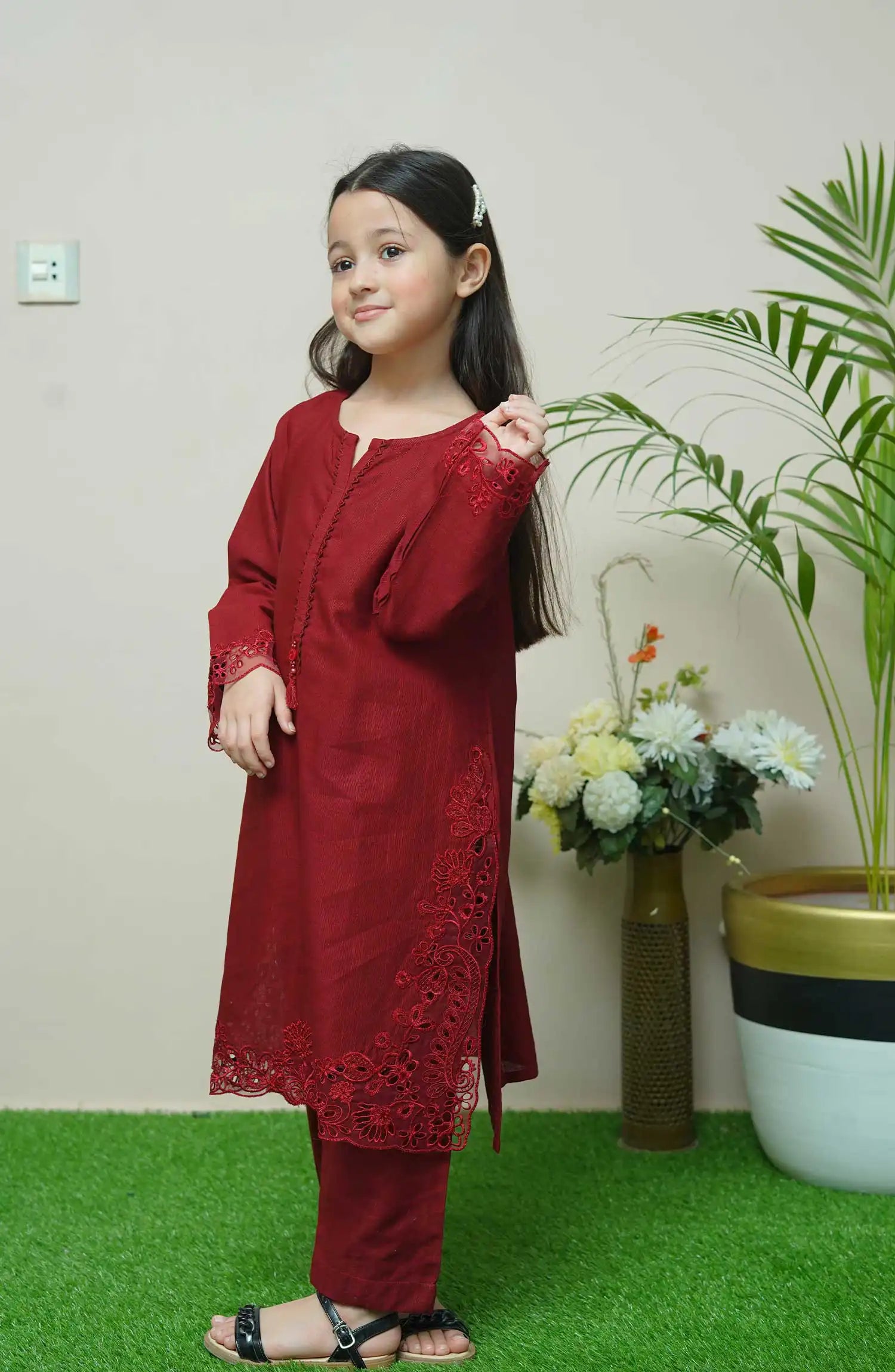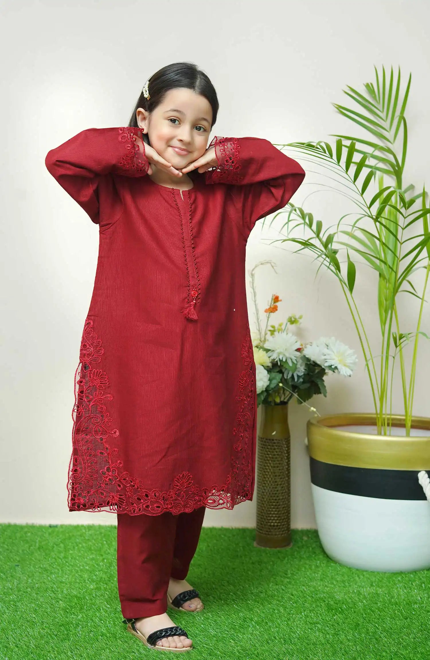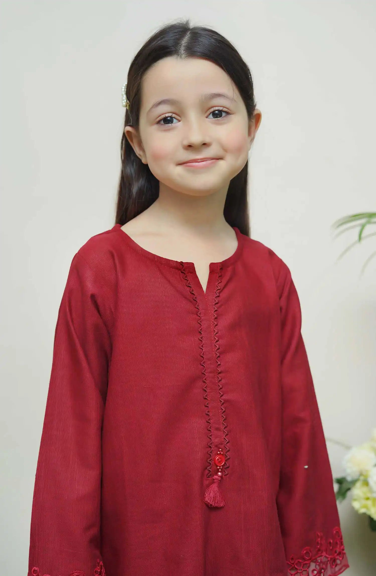 Rua by Casual Lite Embroidered Premium Linen Stitched 3 Piece Suit - D-02 Crimson Folklore - CL25RU - Red - Winter Collection