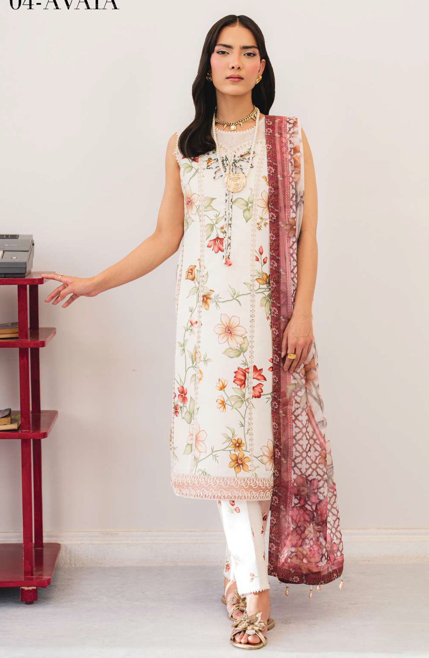 Home Sheen by Alizeh Printed Lawn Unstitched 3 Piece Suit - D-04 Avaia - ALZ25SHEEN - White - Summer Collection