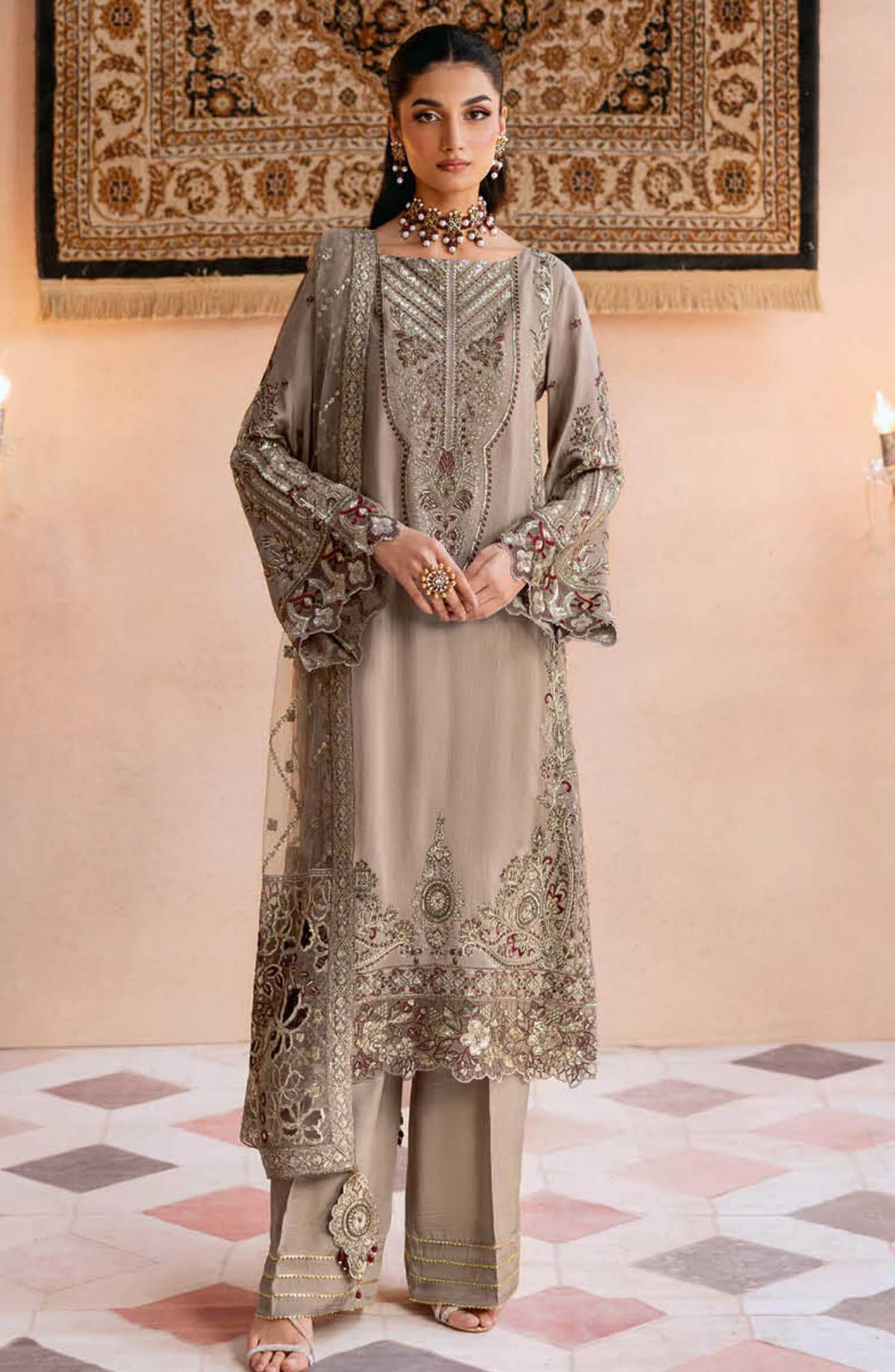 Ramsha Shehnai Raw Silk Collection Vol 01 has been styled in the image for photography and illustrative purposes.