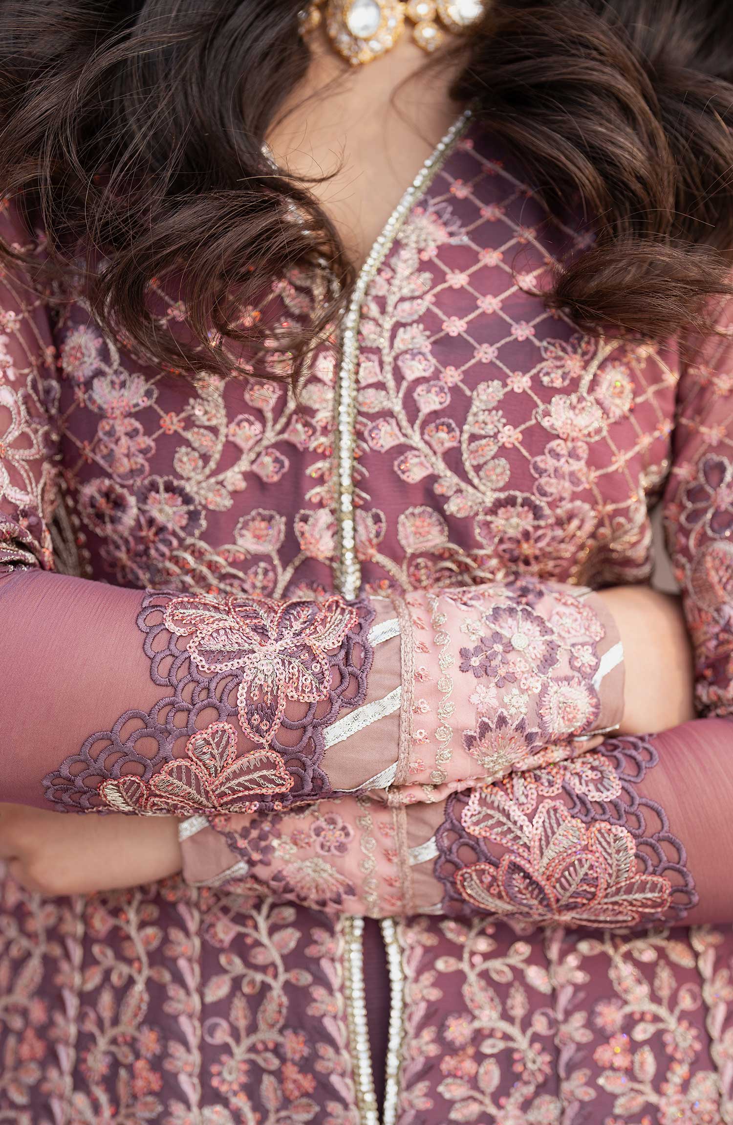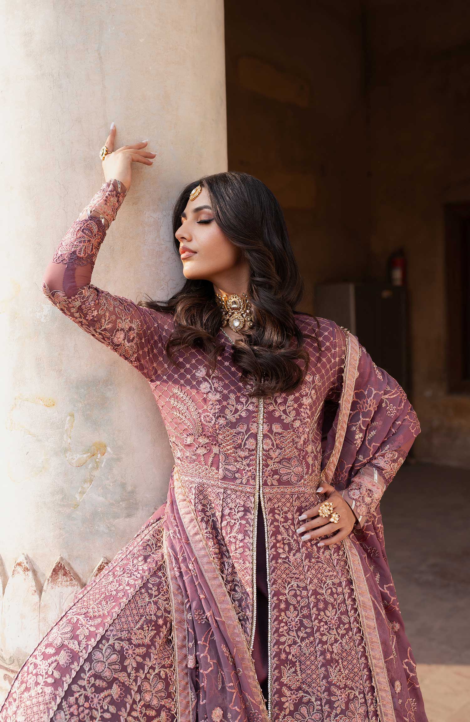 Shehnai Luxury Wedding Formals by Zarif has been styled in the image for photography and illustrative purposes.