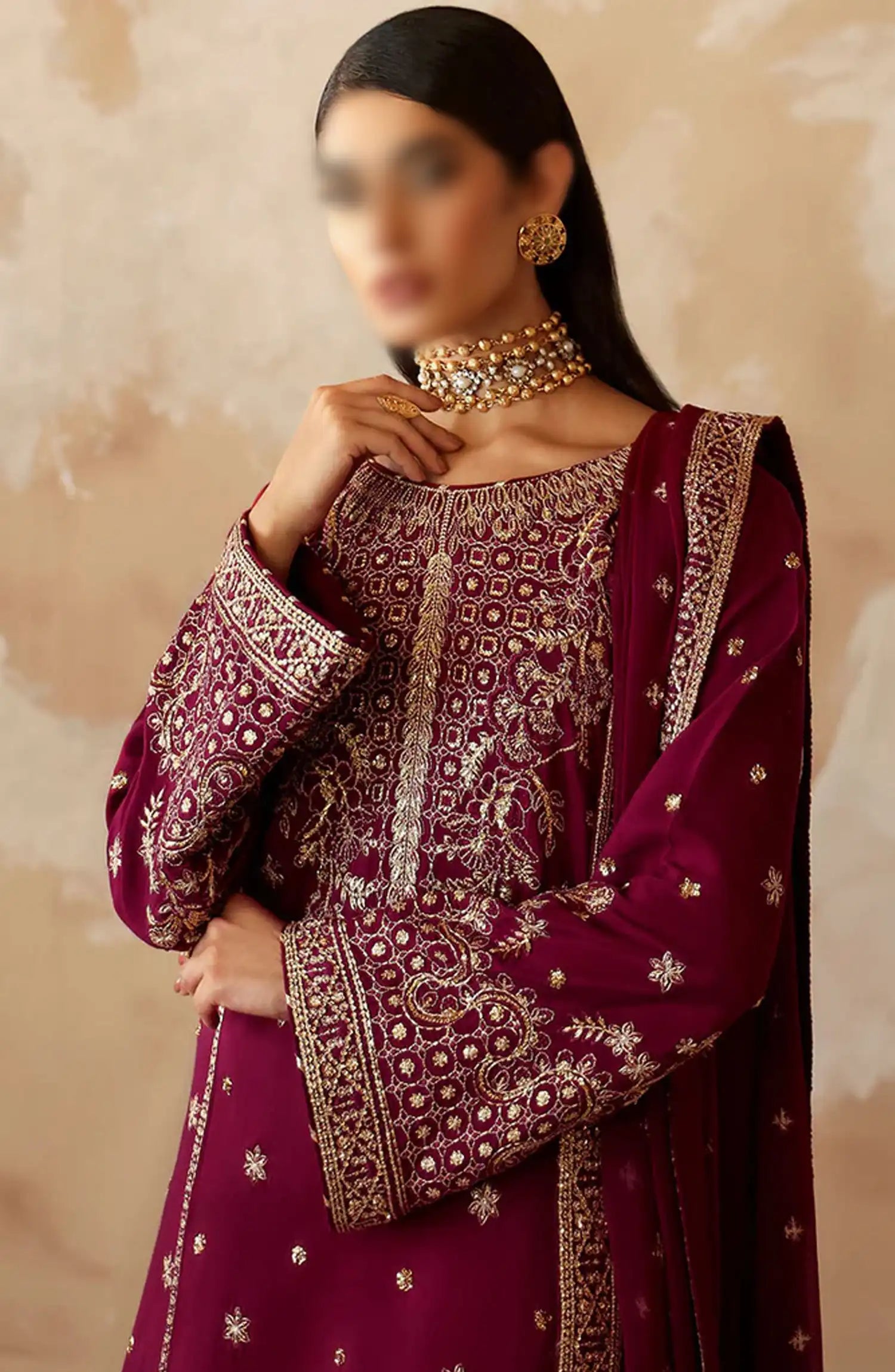 Shehrnaaz by Gulaal Unstitched Raw Silk Collection has been styled in the image for photography and illustrative purposes.