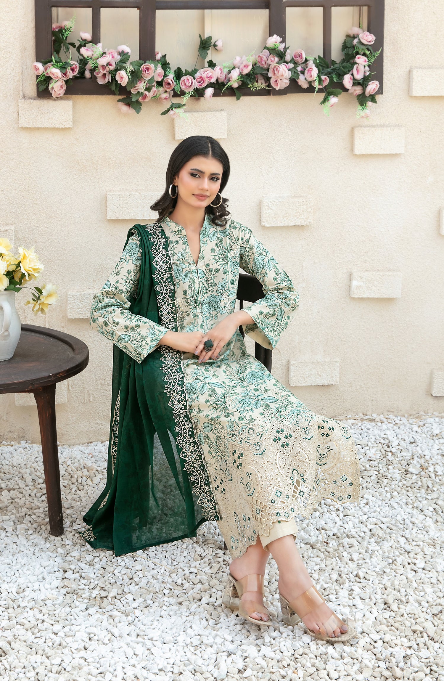 Embroidered Lawn Digital Print Cutwork Dupatta