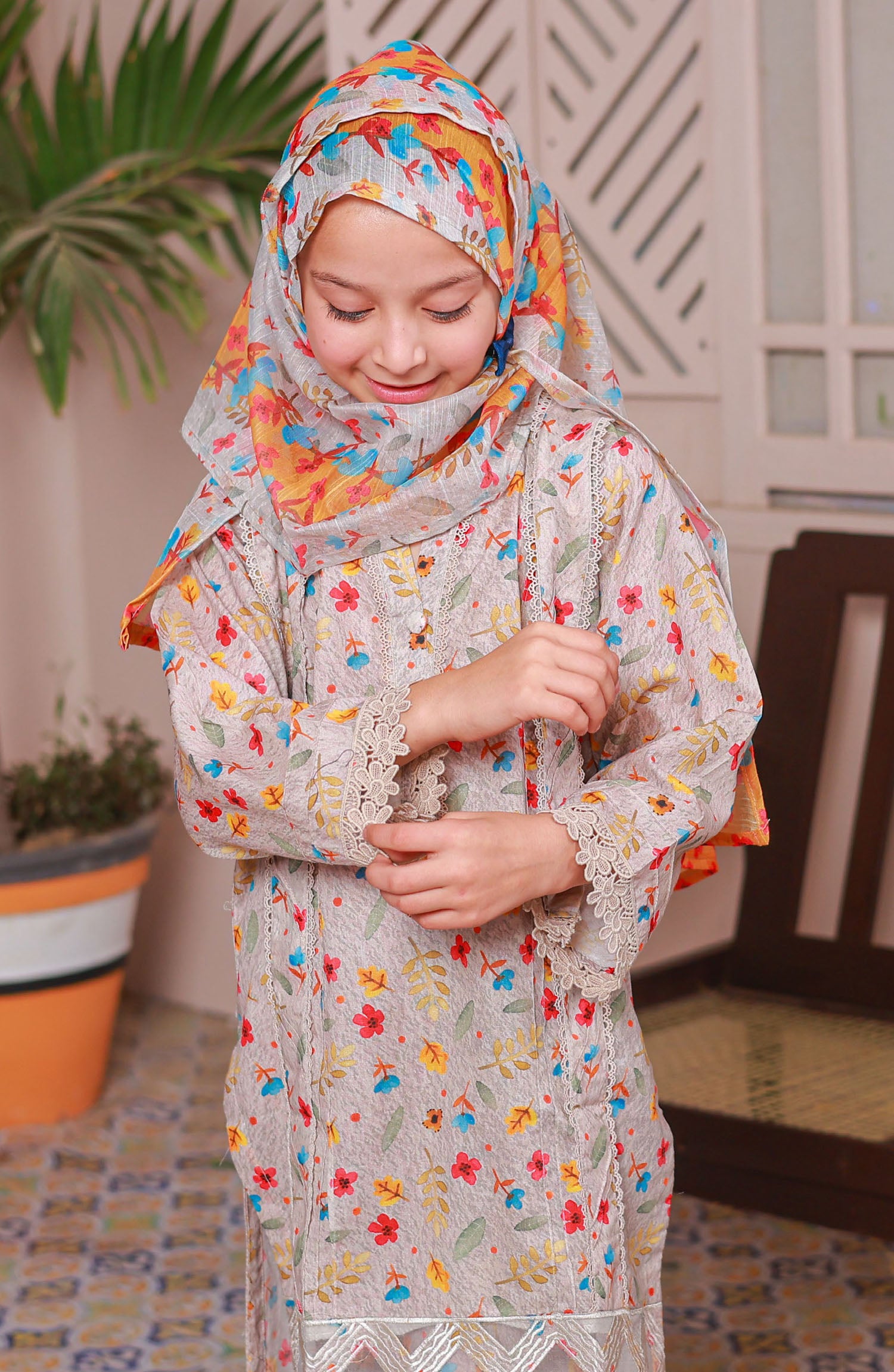Modest Printed Cotton Stitched 3 Piece Suit - 9705-Wht - MOD25PRF - White - Festive Girls Collection