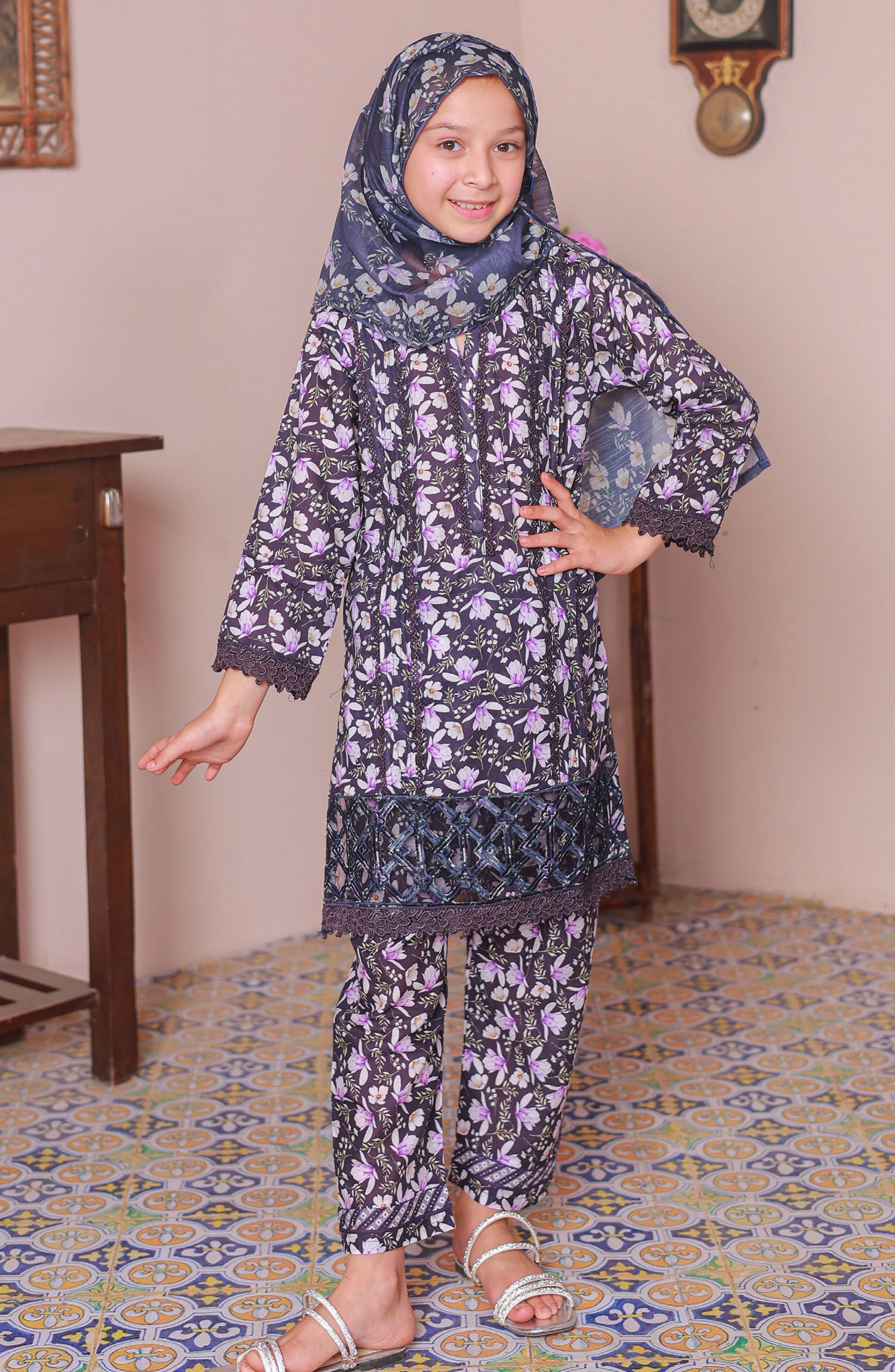 Shifa by Suntex Embroidered Lawn Stitched 3 Piece Suit - SH-2521K - SS25SHLC - Black - Girls Summer Collection