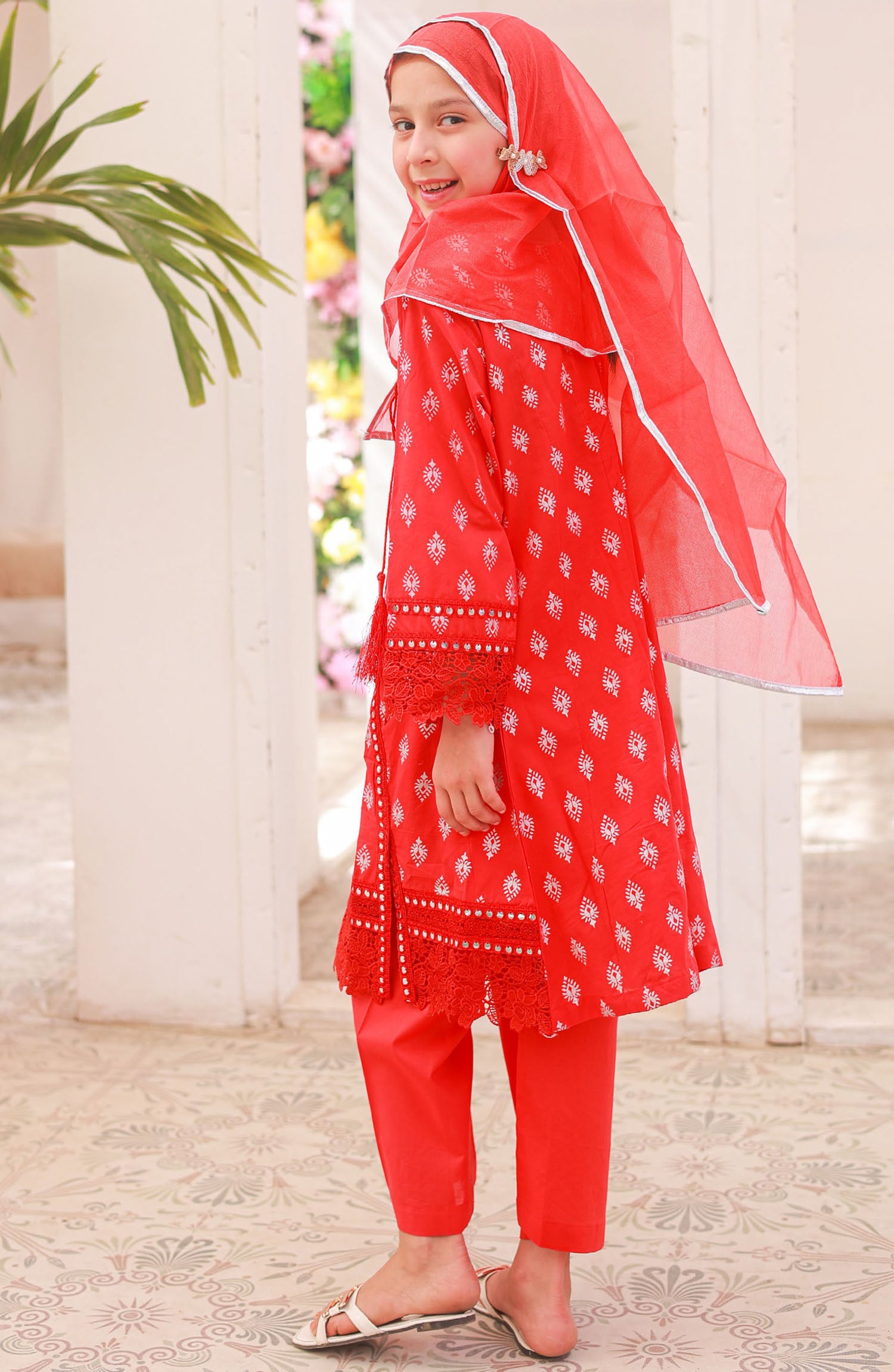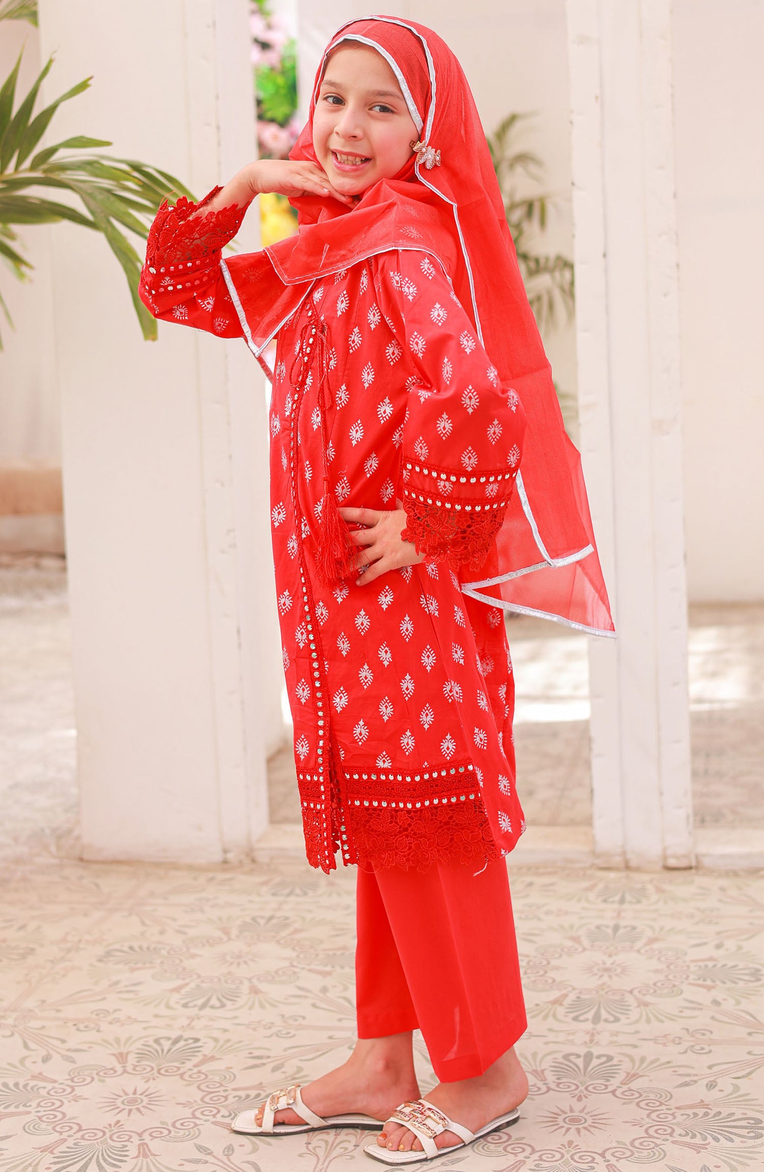 The standard style comes as a long-sleeved kameez with dupatta and trouser/shawlar.