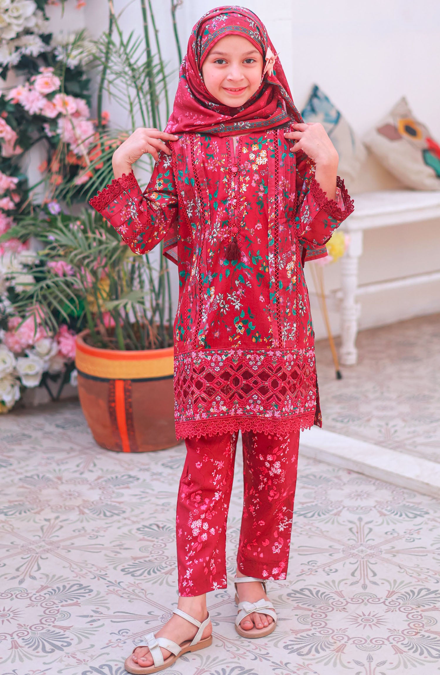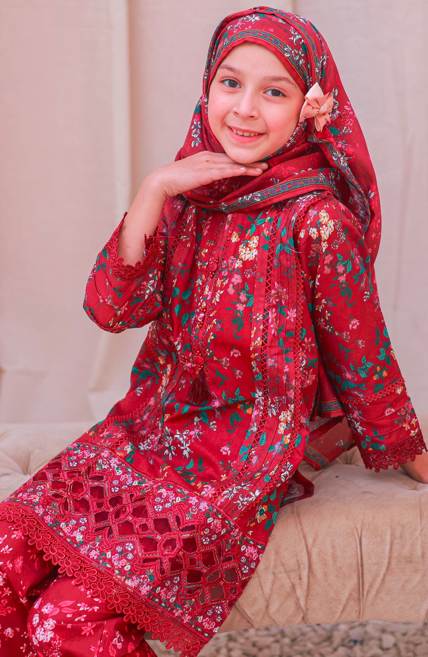 Shifa by Suntex Fabrics Printed Lawn Stitched 3 Piece Suit - SH- 2509K - SS25SH - Ruby - Girls Collection
