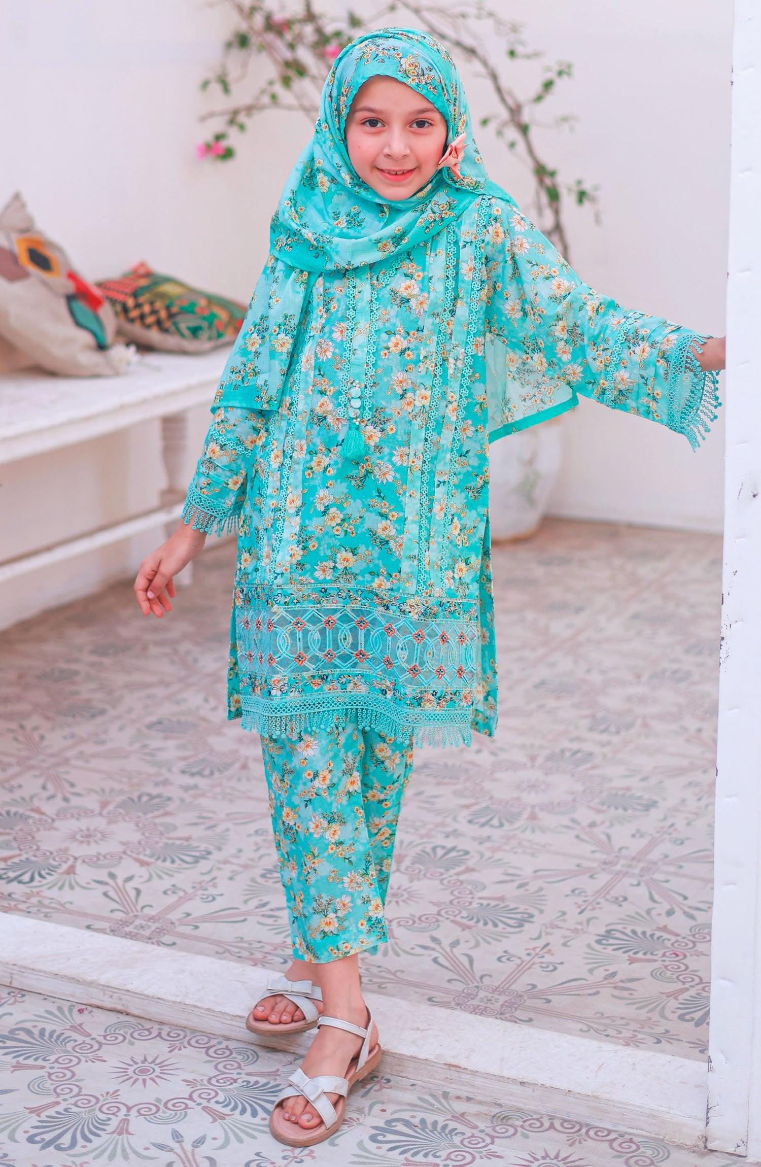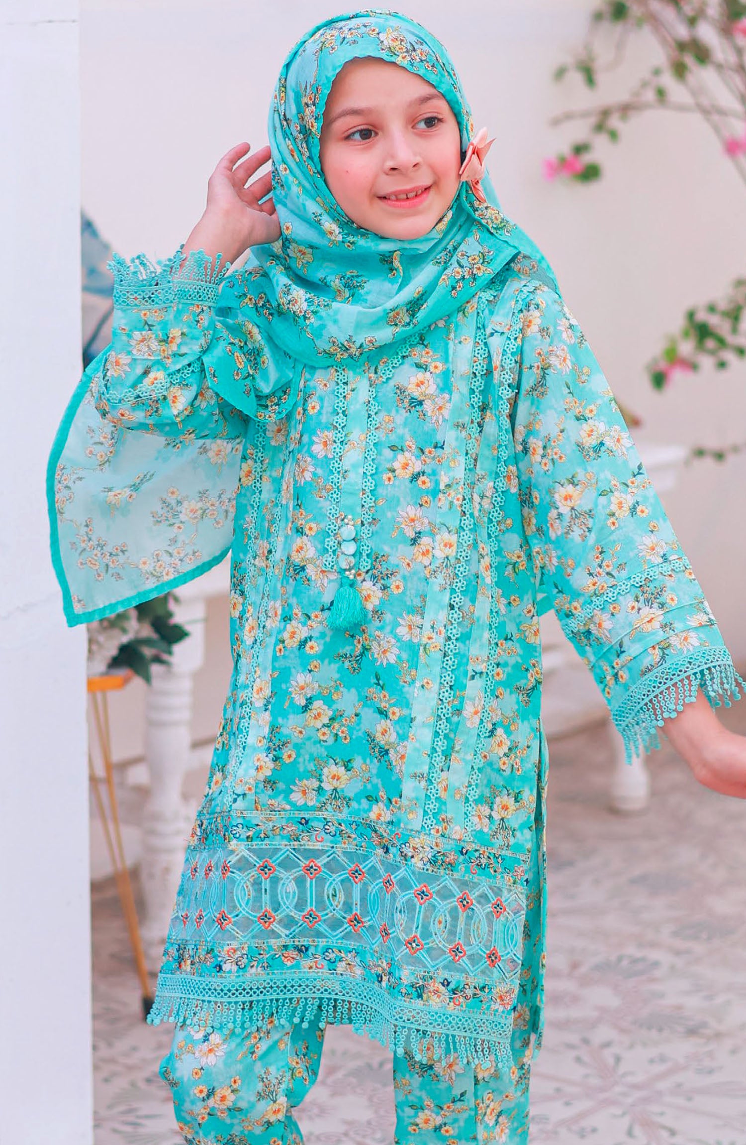 Shifa by Suntex Fabrics Printed Lawn Stitched 3 Piece Suit - SH- 2511K - SS25SH - Torquoise - Girls Collection