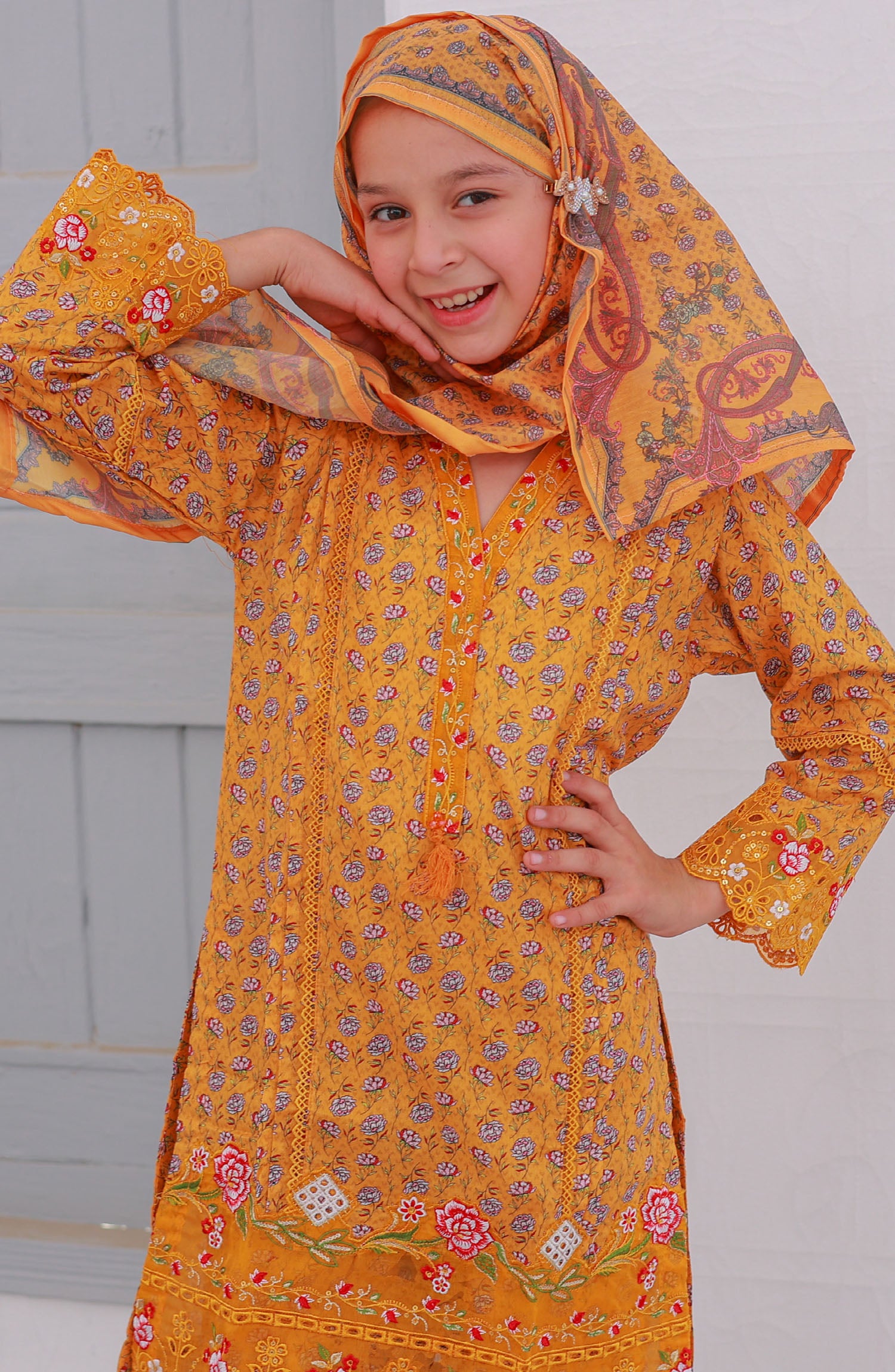 Shifa by Suntex Printed Chikankari Stitched 3 Piece Suit - SH-2532K - SS25SHE - Gold - Girls Summer Collection