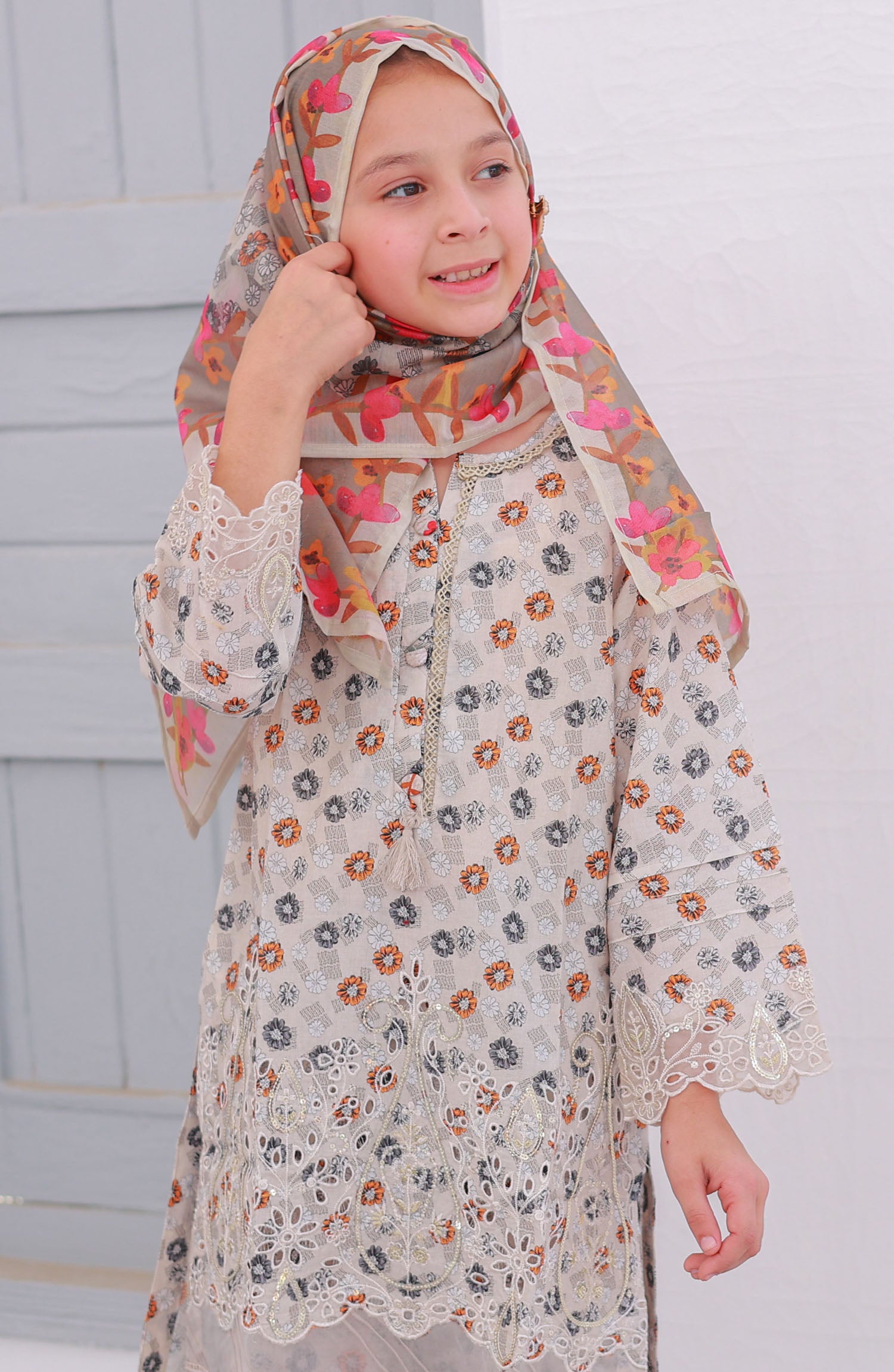 Shifa by Suntex Printed Chikankari Stitched 3 Piece Suit - SH-2534K - SS25SHE - Beige - Girls Summer Collection