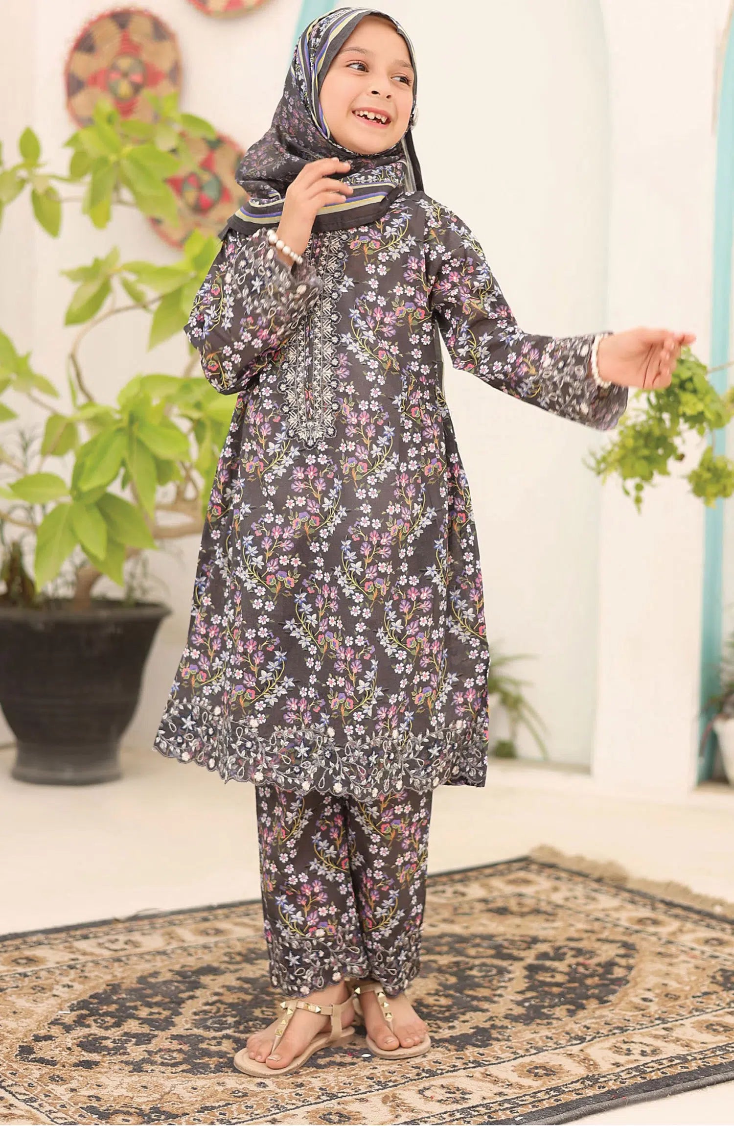 Shifa Girls Lawn Embroidered Collection Vol 07 has been styled in the image for photography and illustrative purposes.