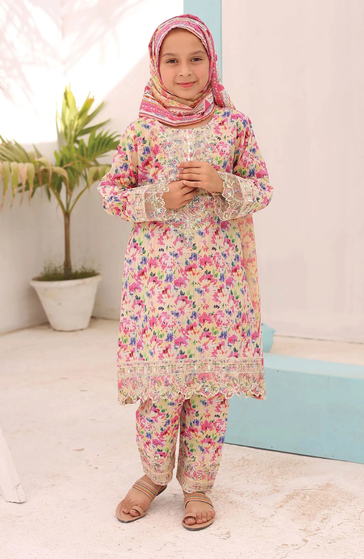Shifa Girls Summer Lawn Embroidered Collection Vol 06 has been styled in the image for photography and illustrative purposes.