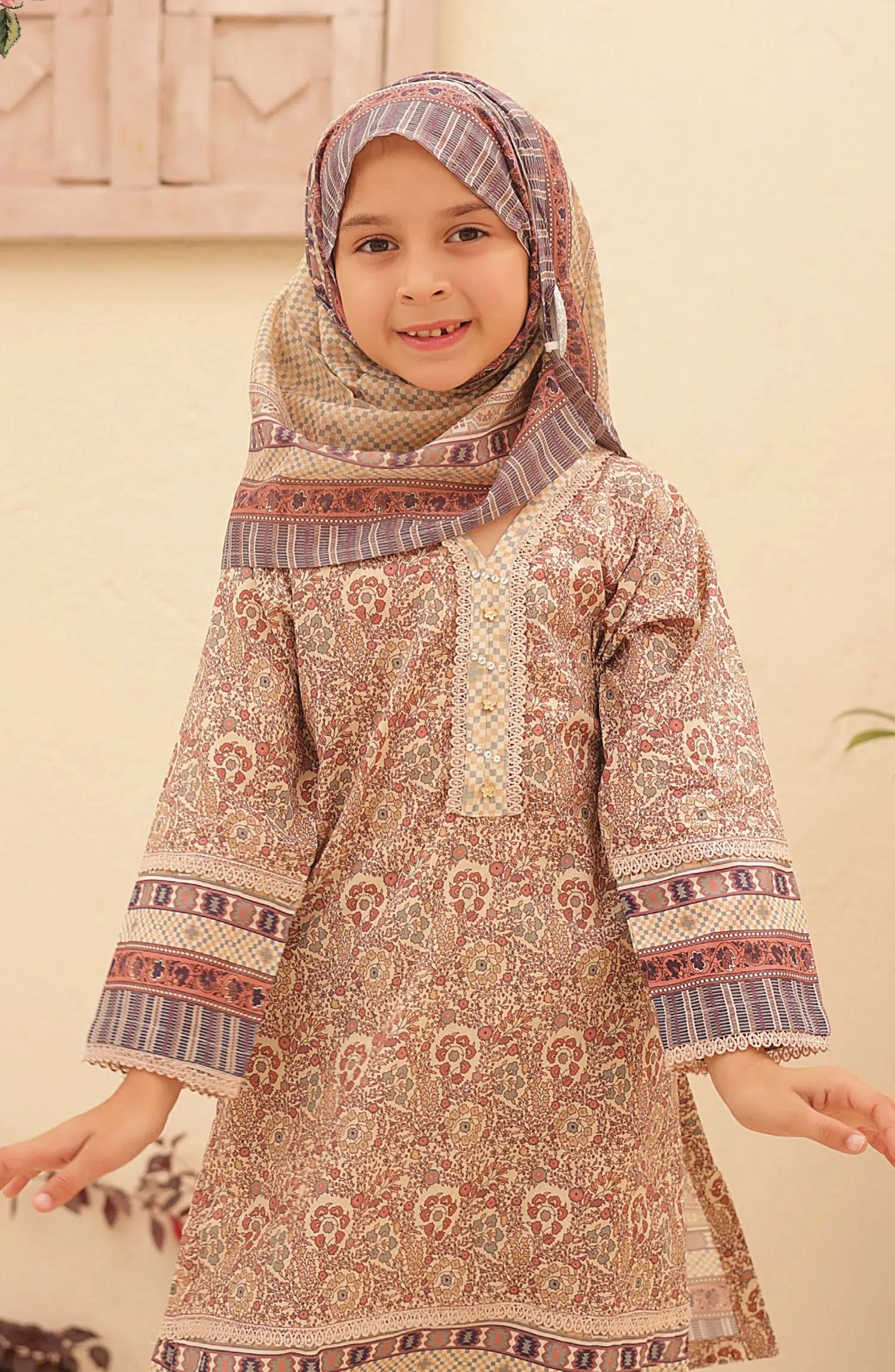 Home Shifa Kids Printed Lawn Stitched Collection Vol 05 - SH 2427 K khaki