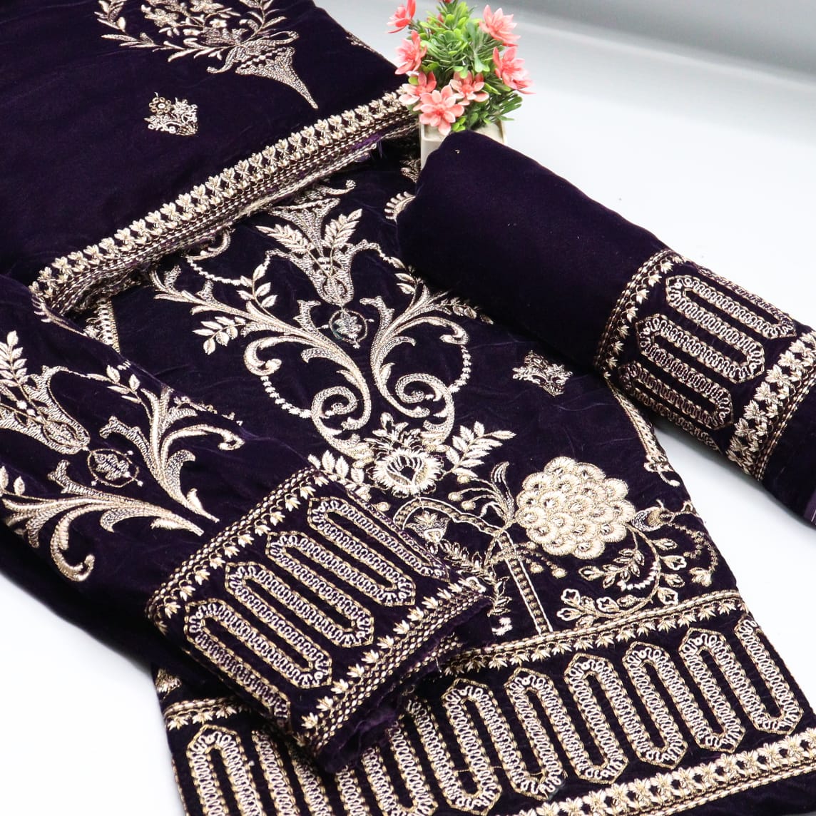 Exclusive Embroidered 3 piece unstitched velvet suit.