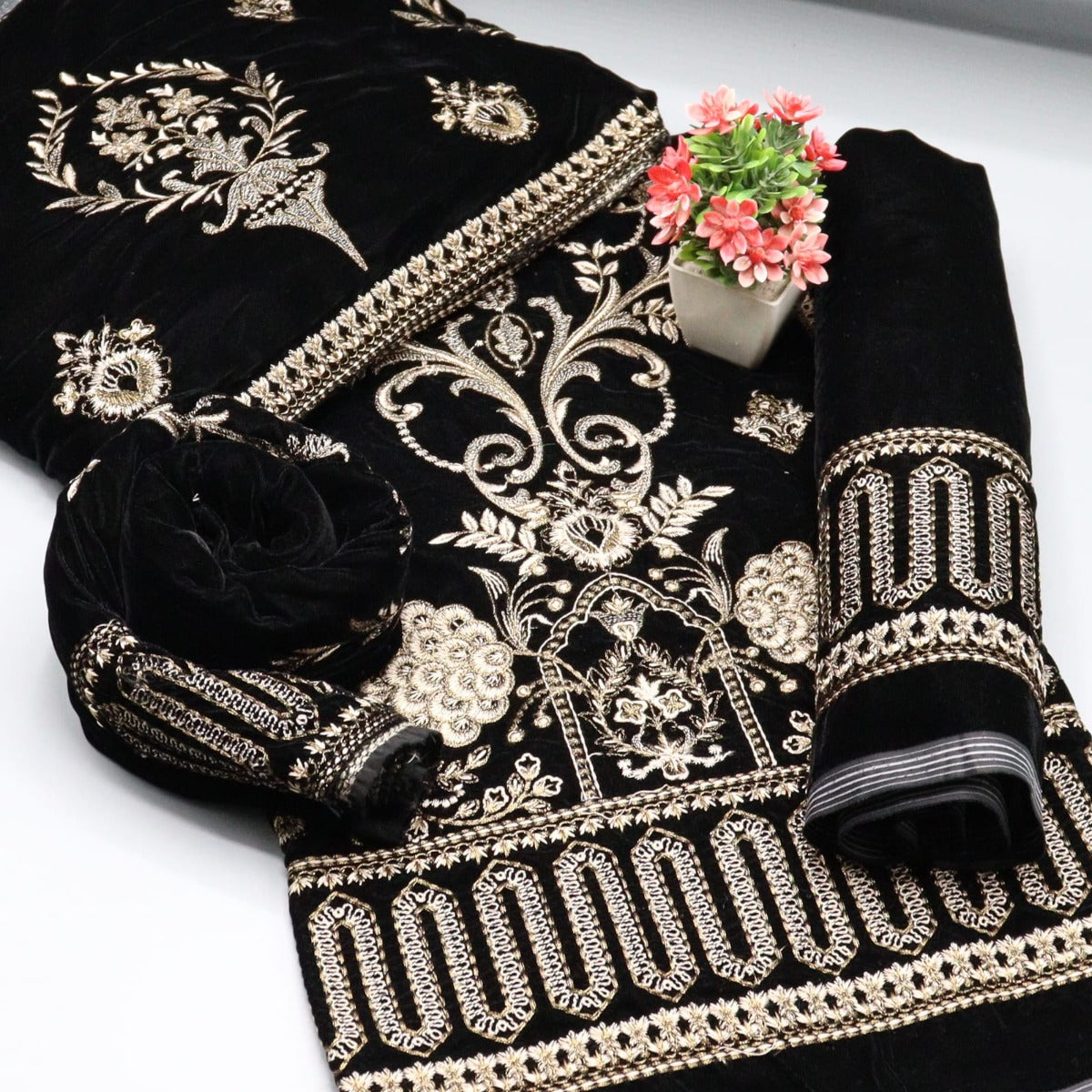 Exclusive Embroidered 3 piece unstitched velvet suit.