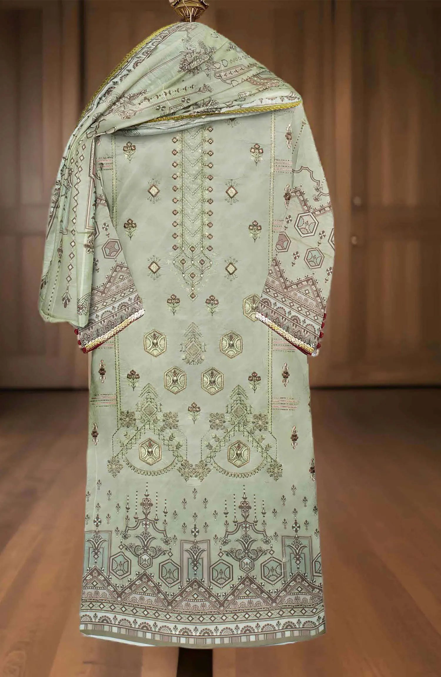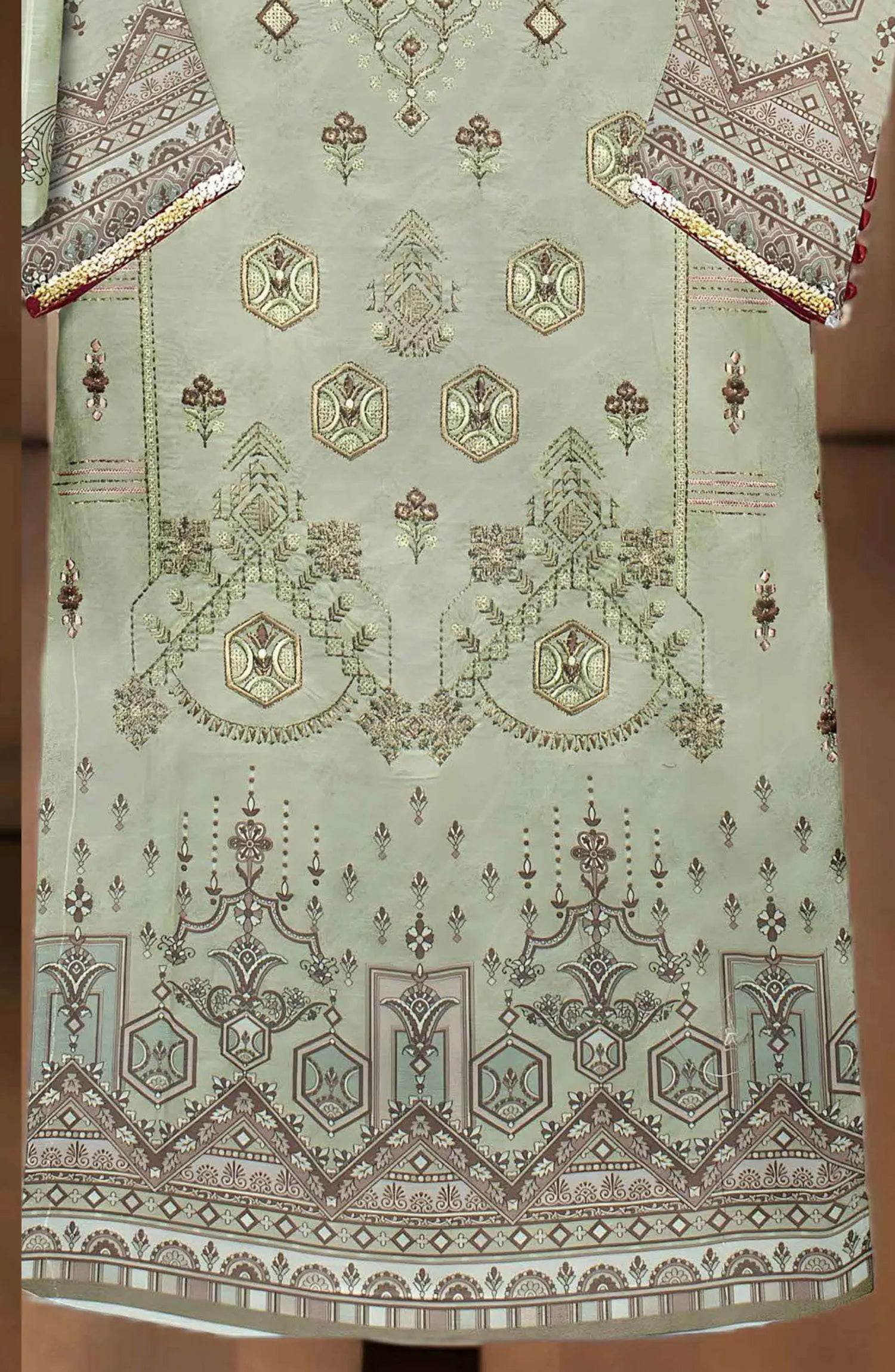 The standard style comes as a long-sleeved kameez with dupatta and trouser/shalwar.