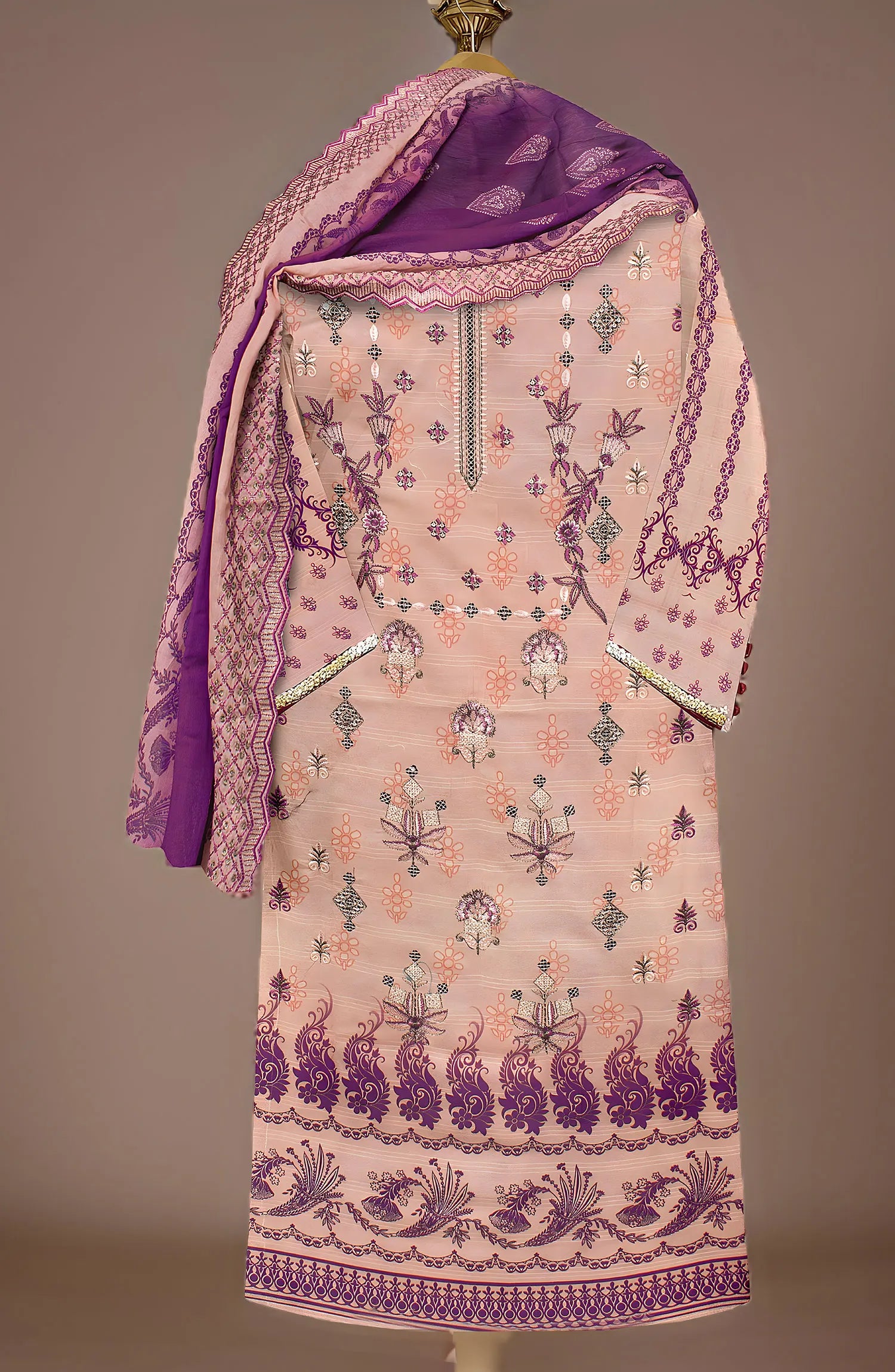HZ Textile Digital Printed Linen Slub Unstitched 3 Piece Suit - LSD-305 - HZ25LNSL - Pink - Winter Collection