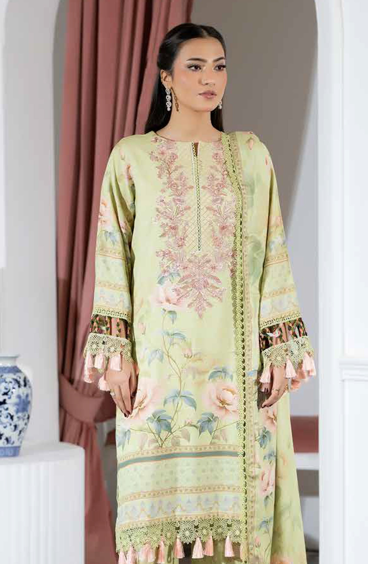 Printed & Embroidered Peach Leather Unstitched 3 Piece Suit
