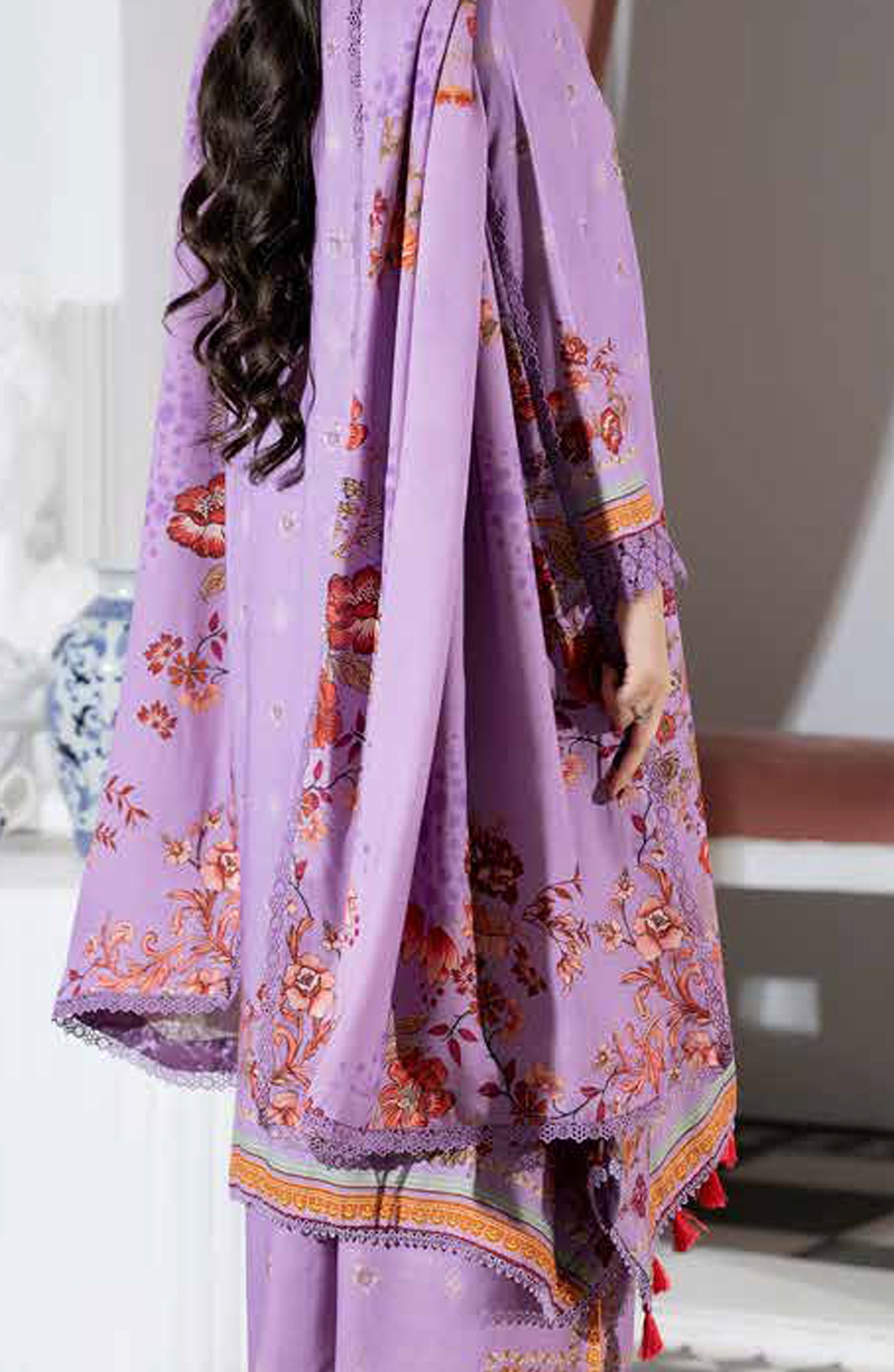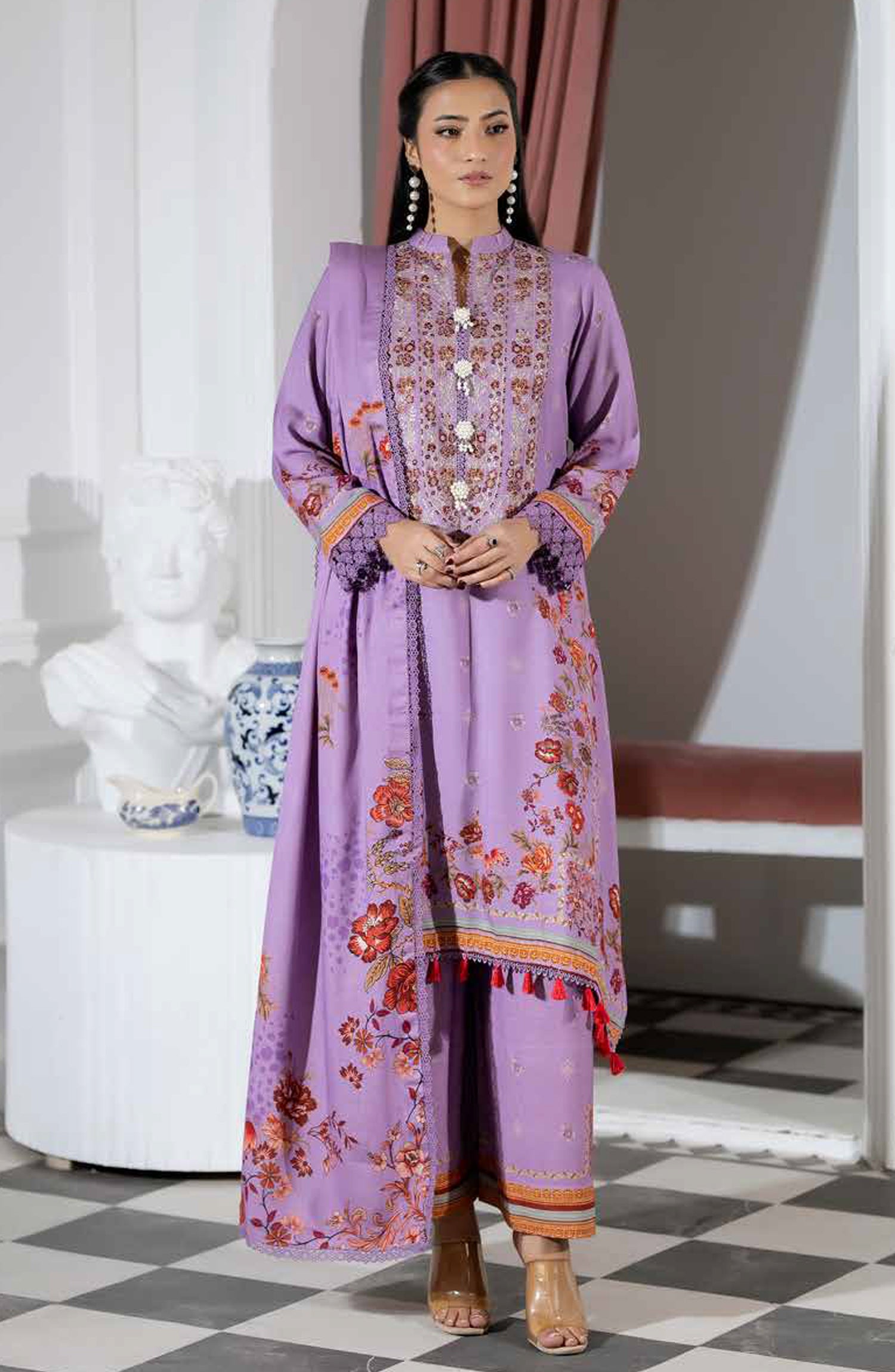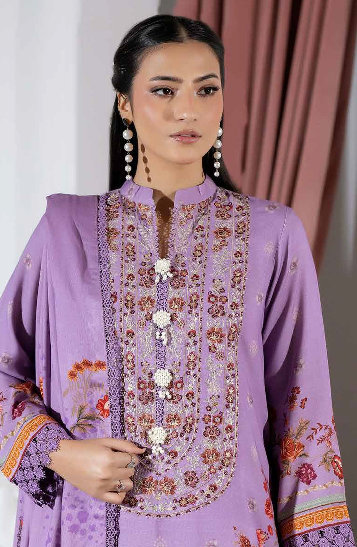 Printed & Embroidered Peach Leather Unstitched 3 Piece Suit