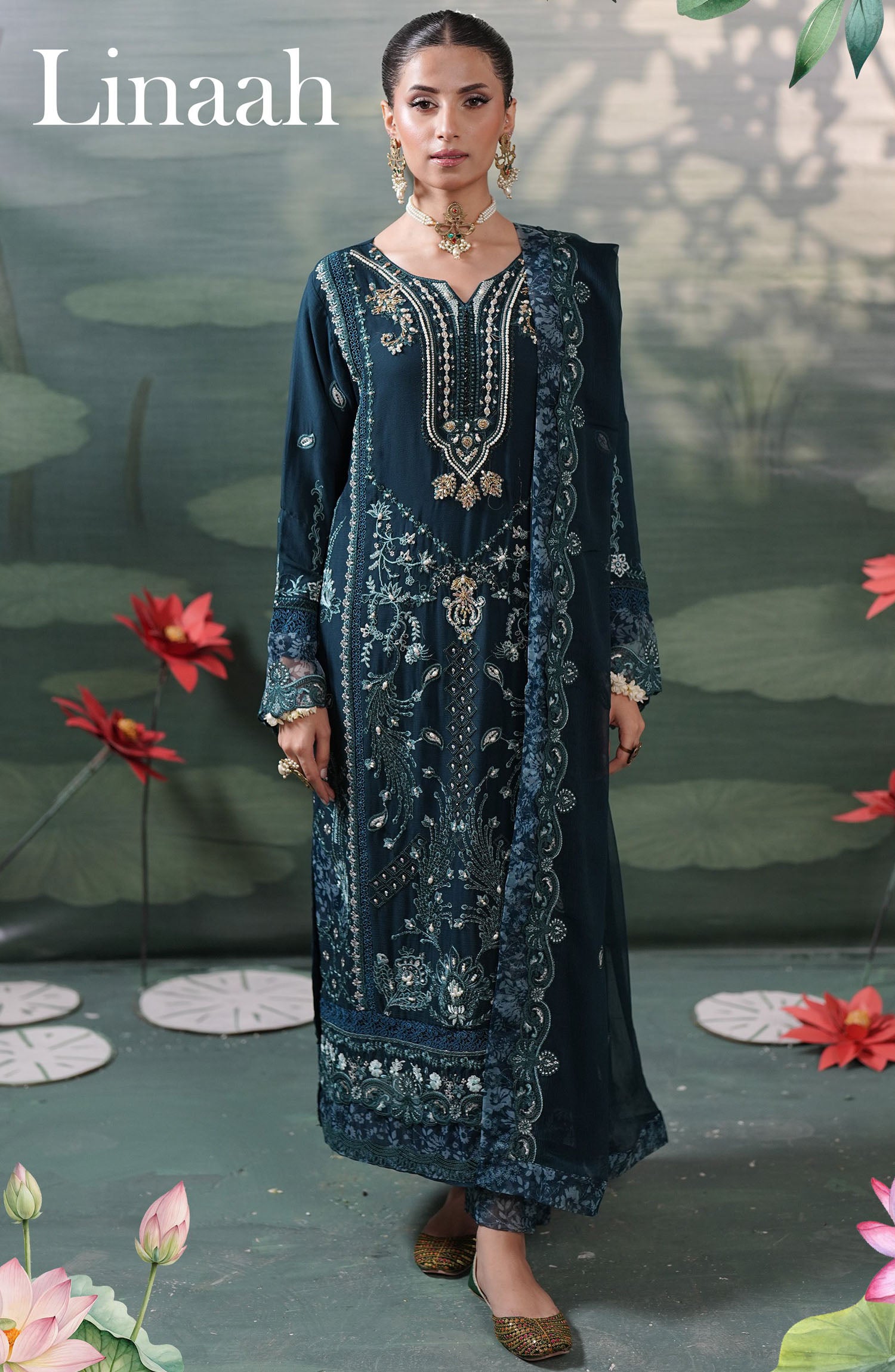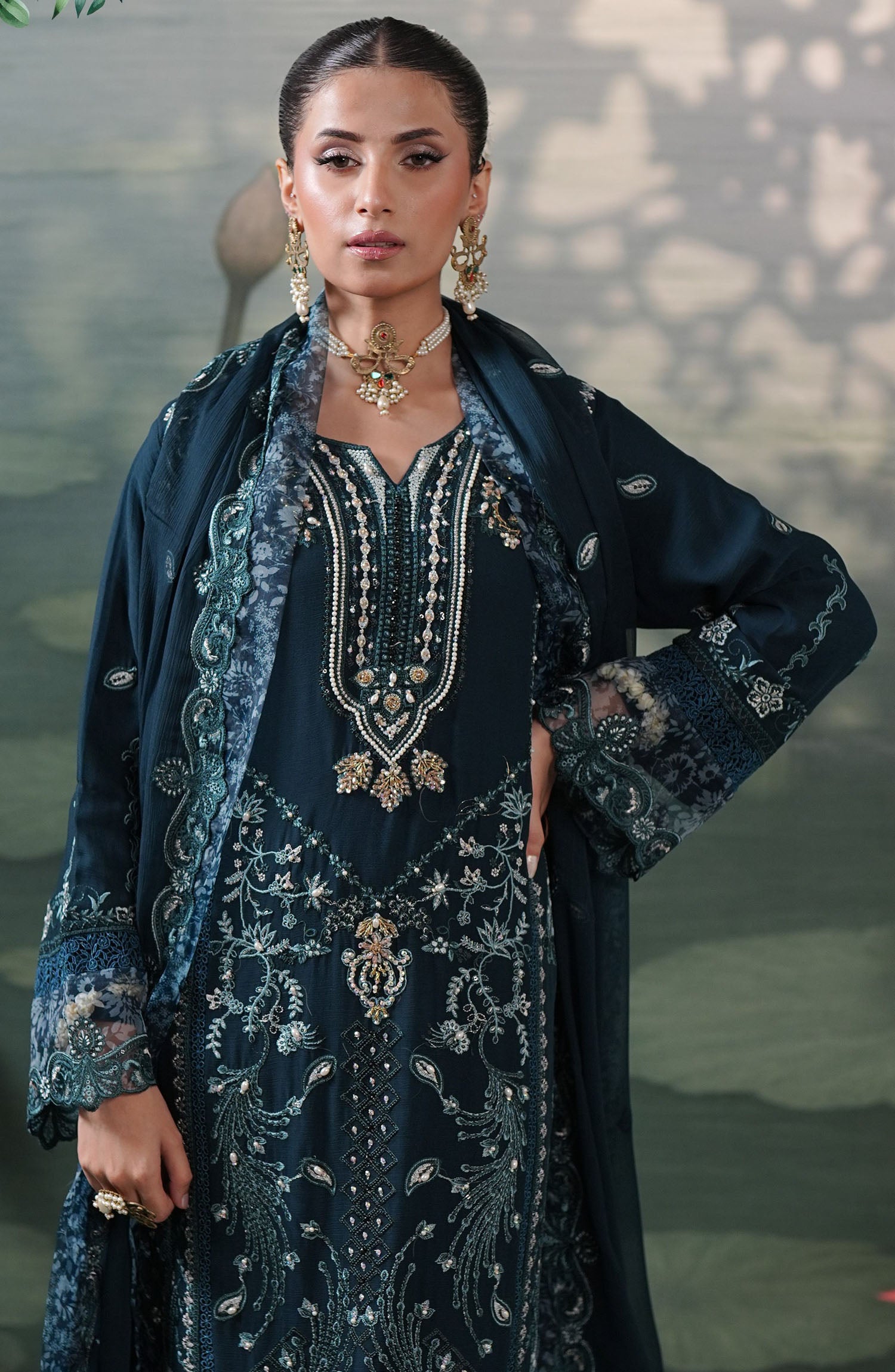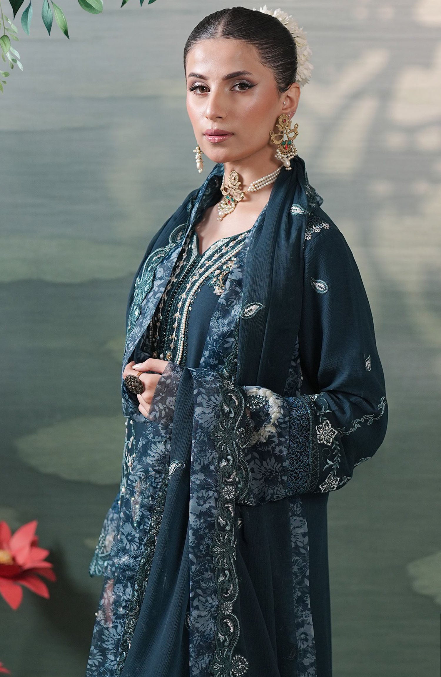 Home Silvana by Guzel Embroidered Chiffon Stitched 3 Piece Suit - Linaah - GUZ25SLC - Blue - Luxury Collection